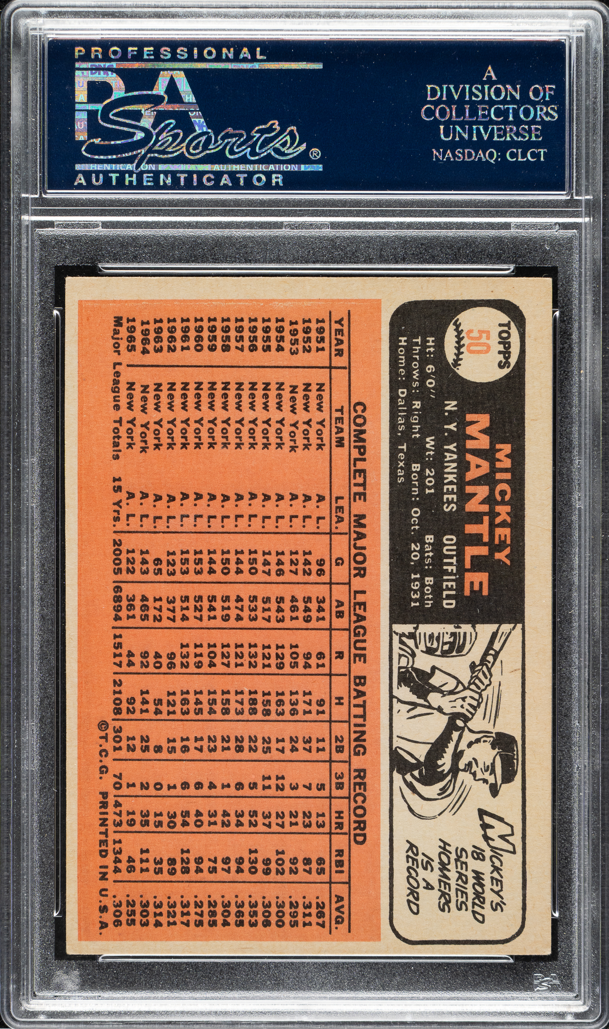 Lot # 2030: 1966 Topps #50 Mickey Mantle PSA EX 5