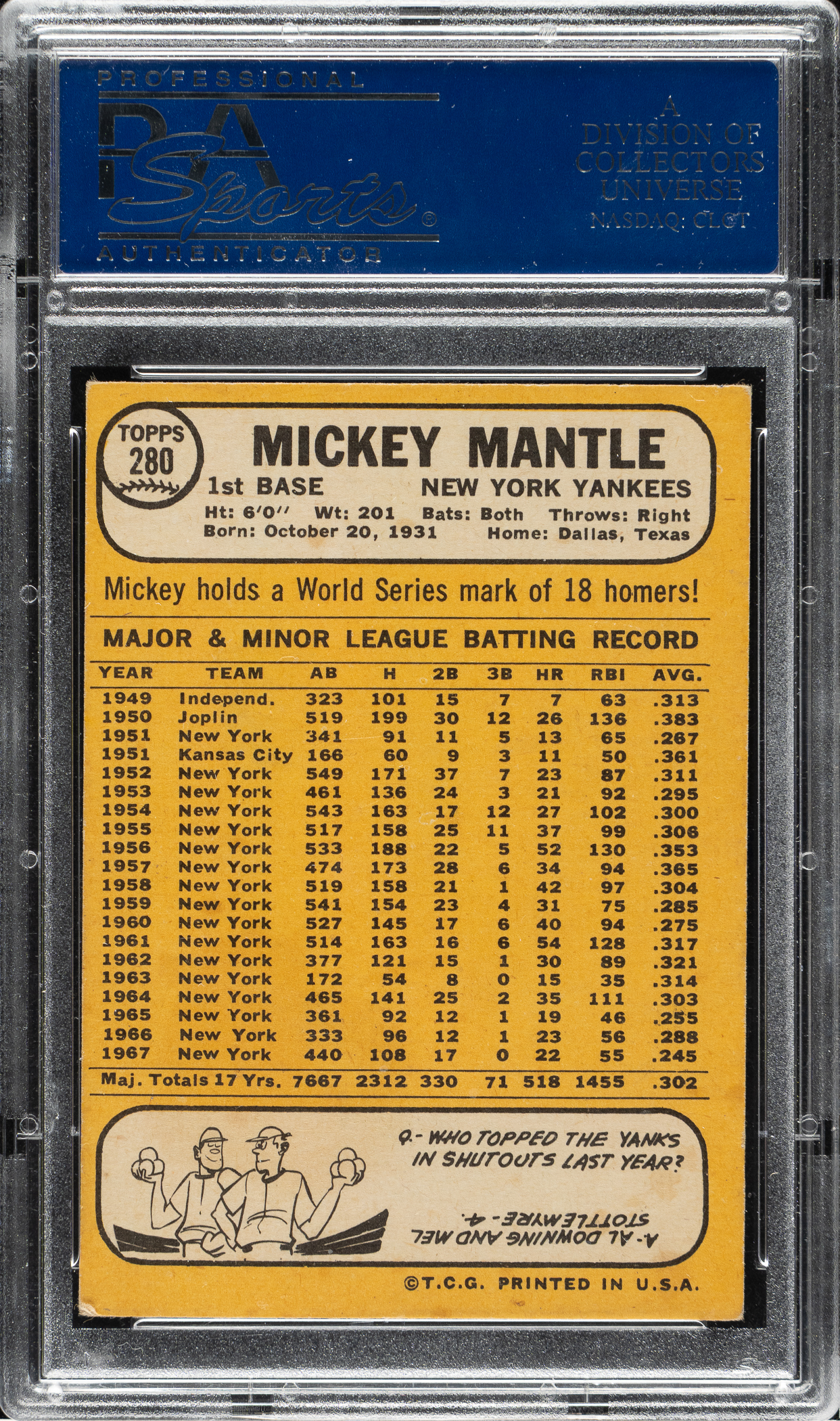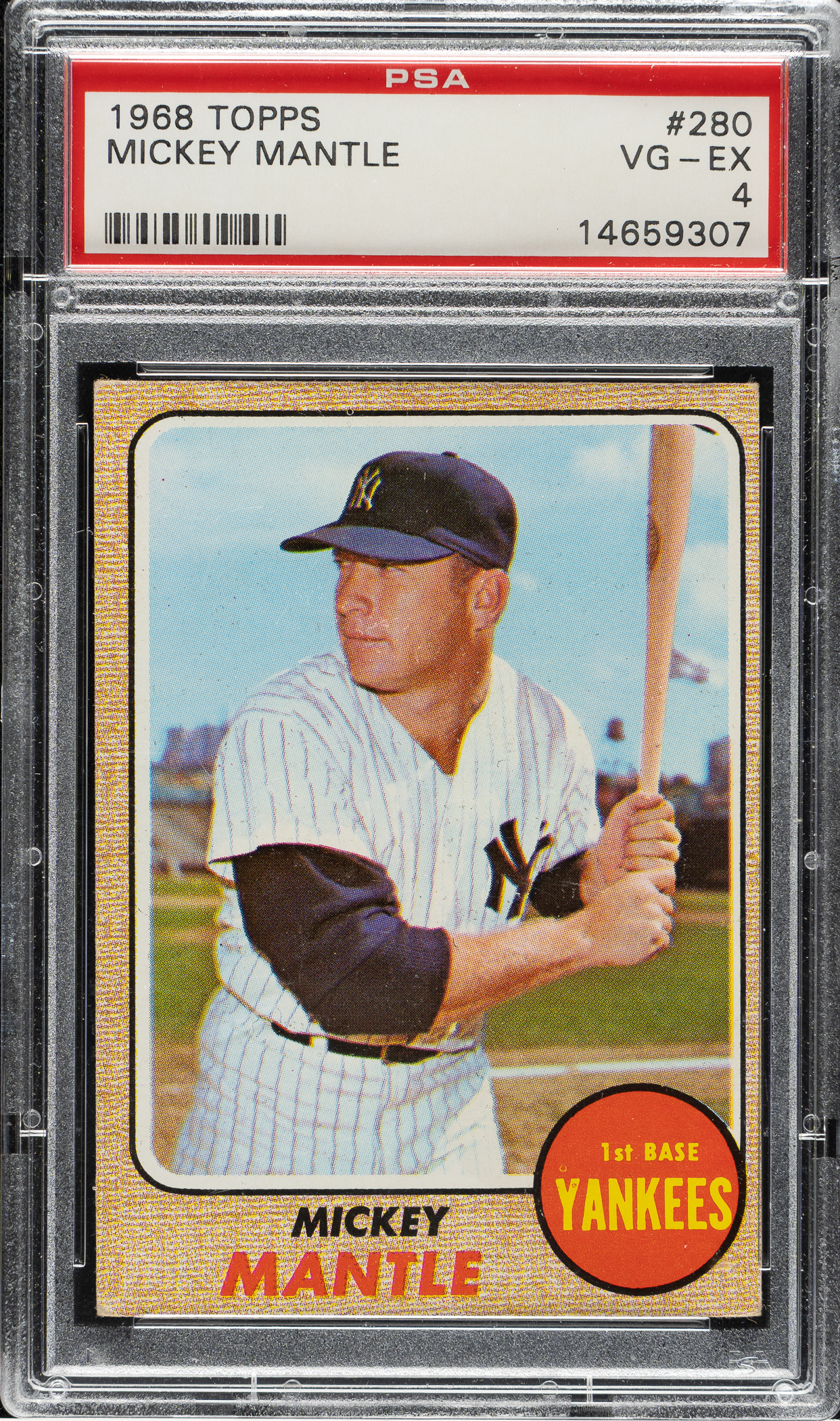 Lot # 2105: 1968 Topps #280 Mickey Mantle PSA VG-EX 4