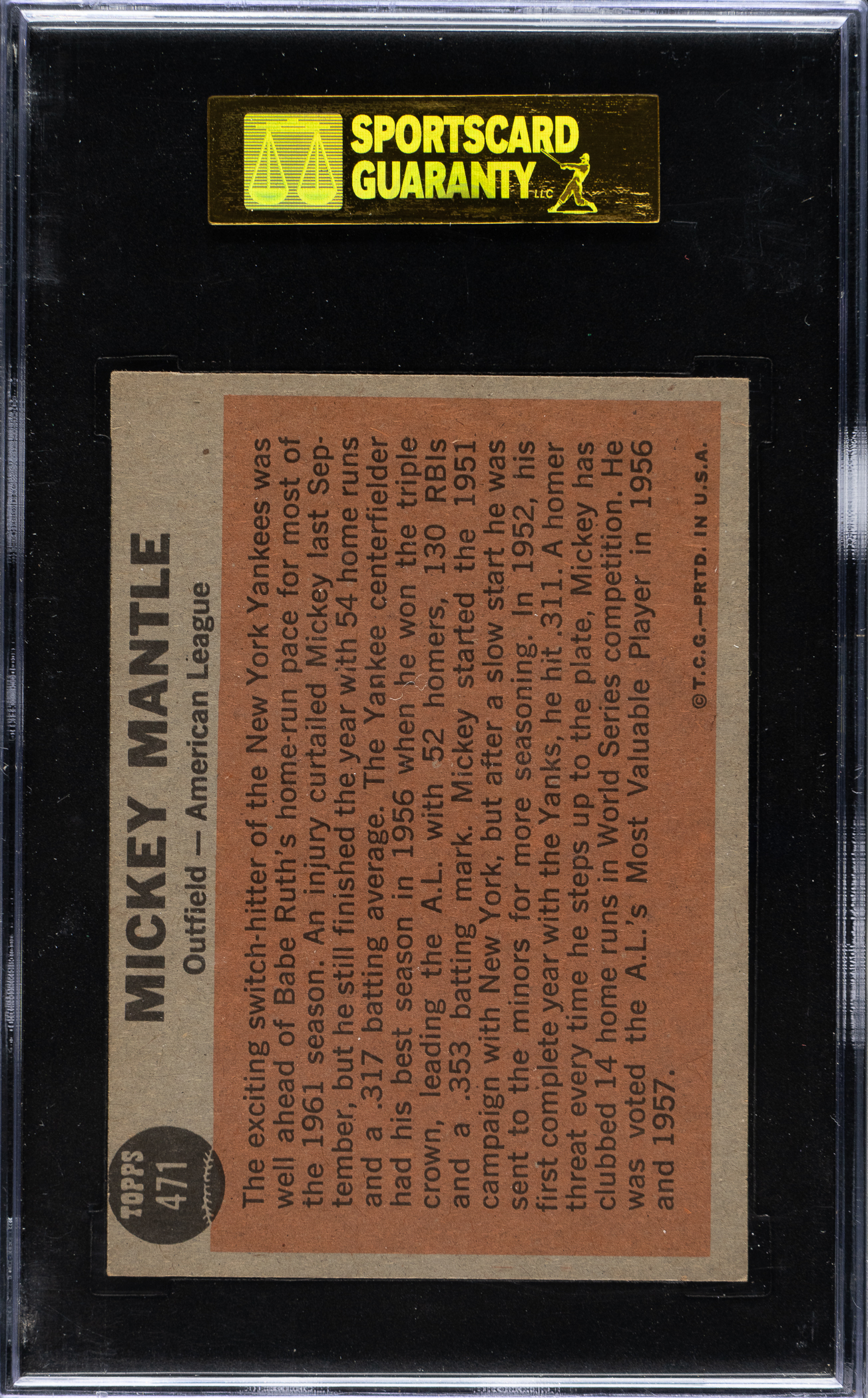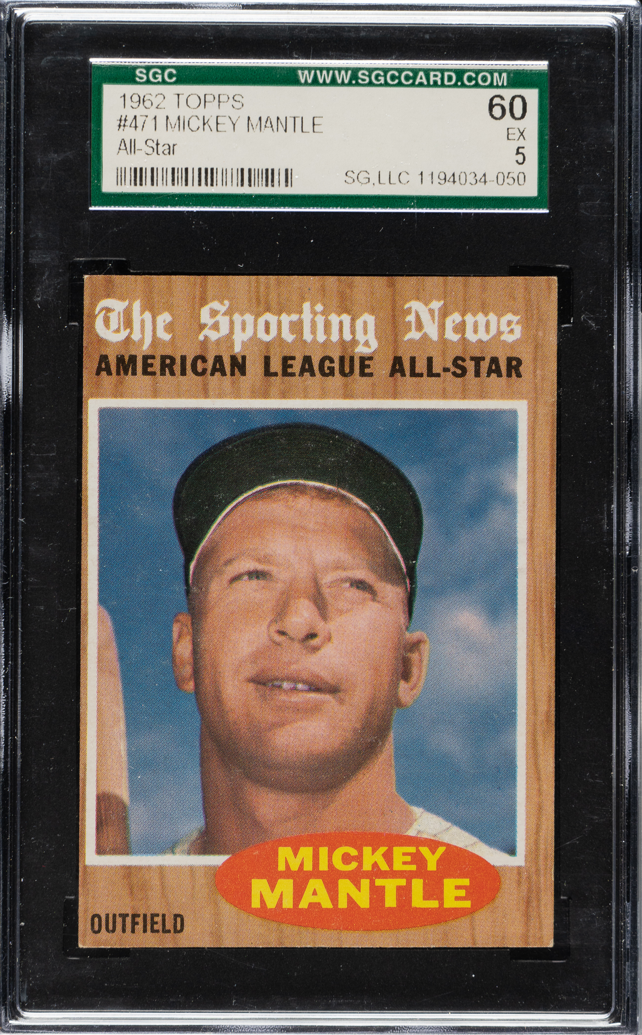 Graded EX 60 by SGC. New York Yankees Hall of Famer Mickey Mantle.