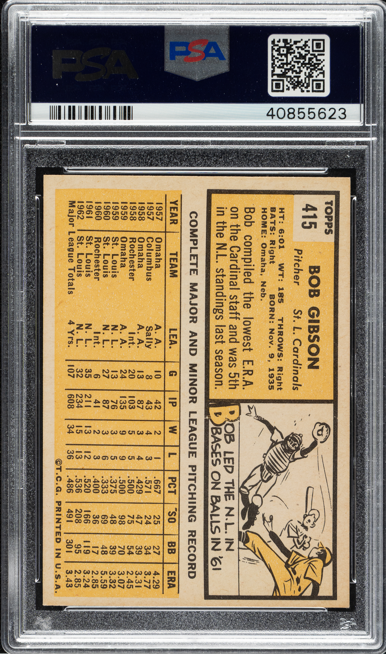 Graded EX-MT 6 by PSA. St. Louis Cardinals Hall of Famer Bob Gibson.