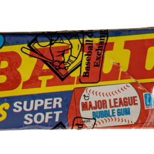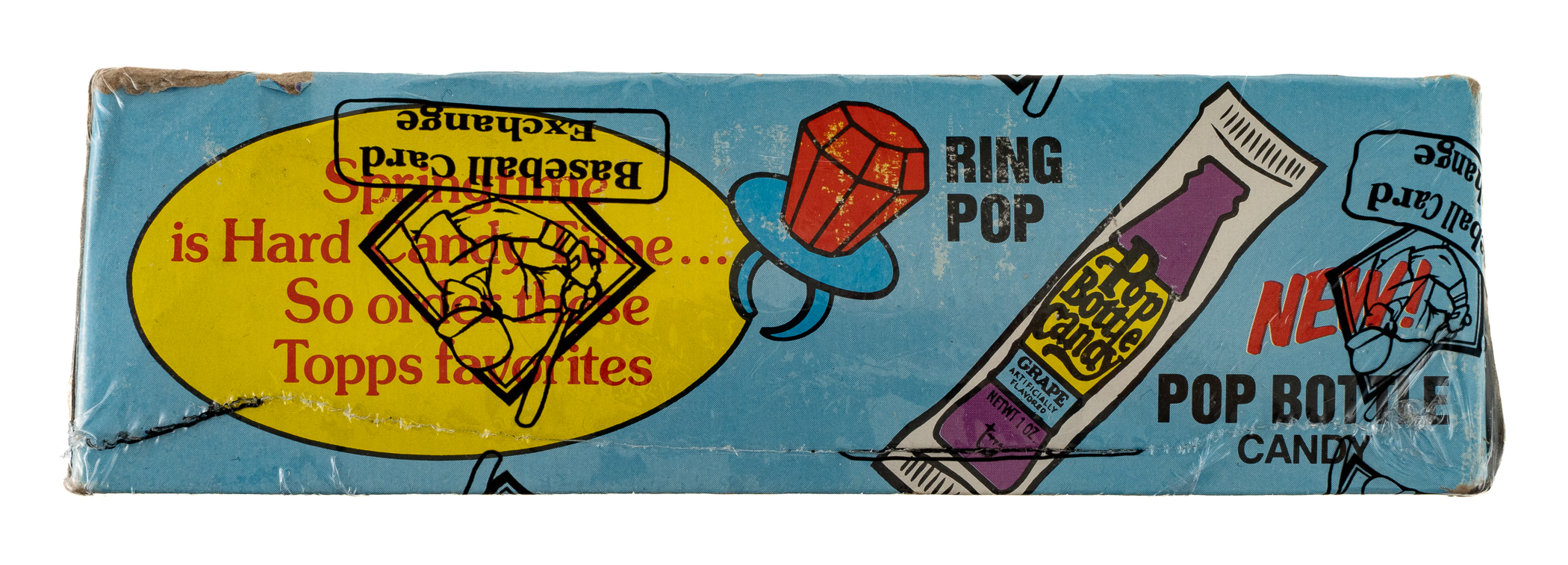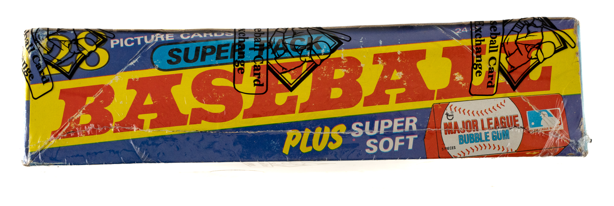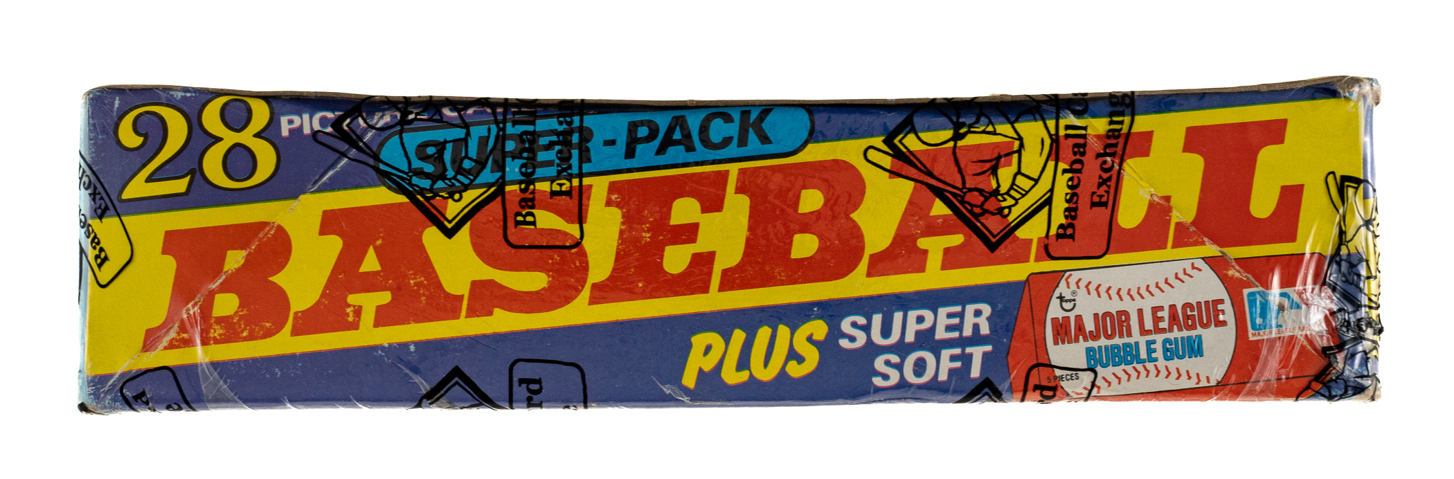 Complete, original unopened "Super" cello box of 1980 Topps baseball. The box houses 24 cello packs, with each pack containing 28 cards for a total of 672 cards. The 1980 Topps set includes the rookie card of Rickey Henderson and many other Hall of Famers including Nolan Ryan, George Brett, and Ozzie Smith. The store display box shows moderate shelf wear. The box comes shrink-wrapped by Baseball Card Exchange (owned by Steve Hart, the foremost expert on unopened material).