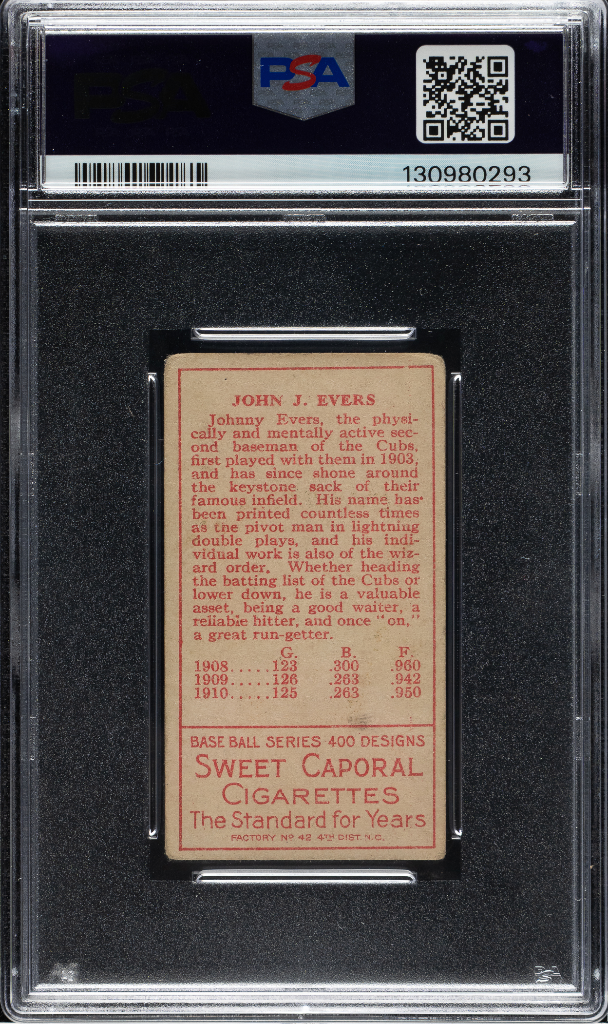 Graded GOOD 2 by PSA. Chicago Cubs Hall of Famer Johnny Evers.
