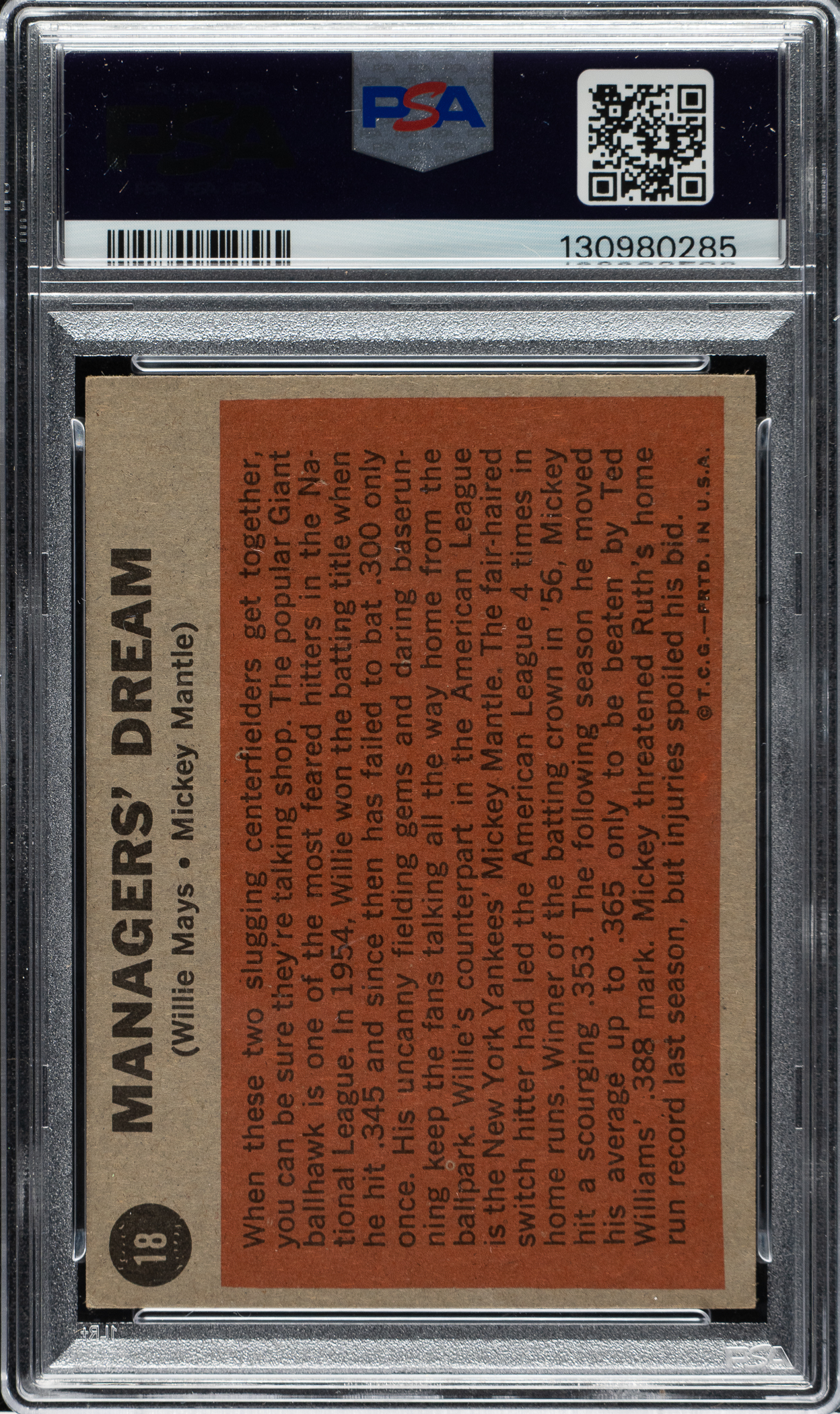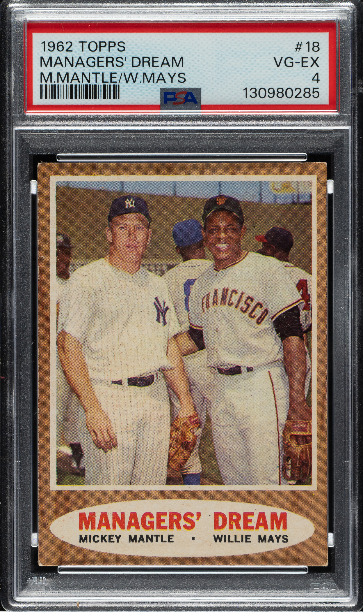 1962 Topps #18 Managers' Dream with Mickey Mantle and Willie Mays PSA VG-EX 4