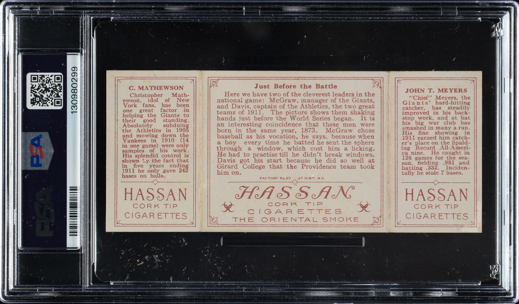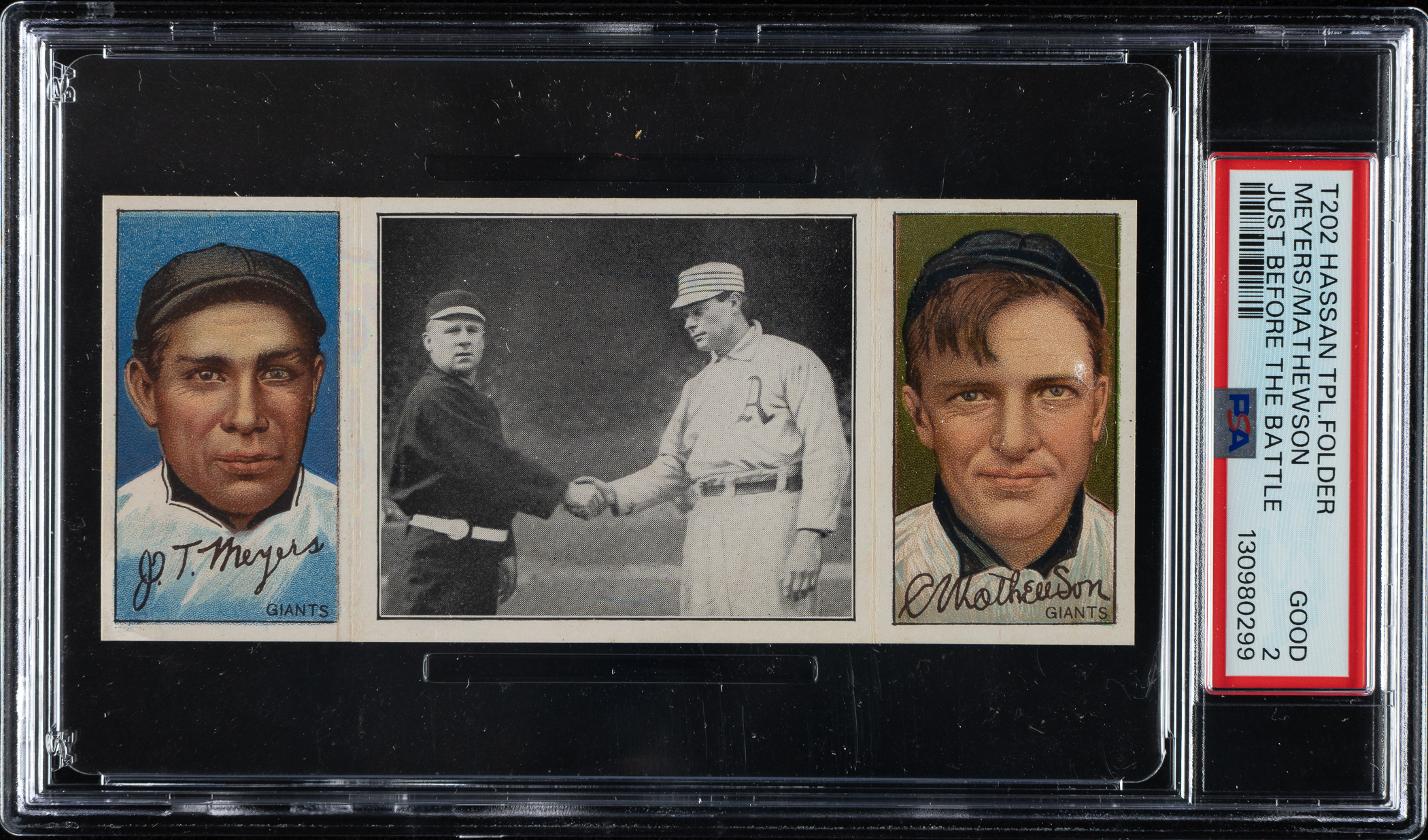 MP# 3478 1912 T202 Hassan Triple Folder "Lobert Almost Caught" Mattern/Kling PSA EX+ 5.5 Buy Now – $225