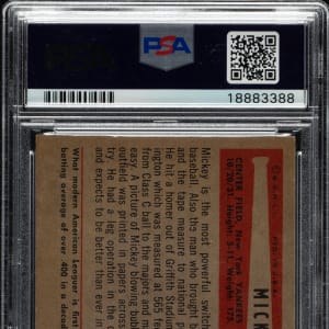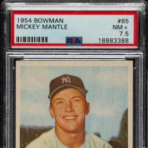 Graded NM+ 7.5 by PSA. High-grade example of New York Yankees Hall of Famer Mickey Mantle from the classic 1954 Bowman set. The offered card has bright colors, strong corners, and centering slightly toward the bottom. Clean reverse.