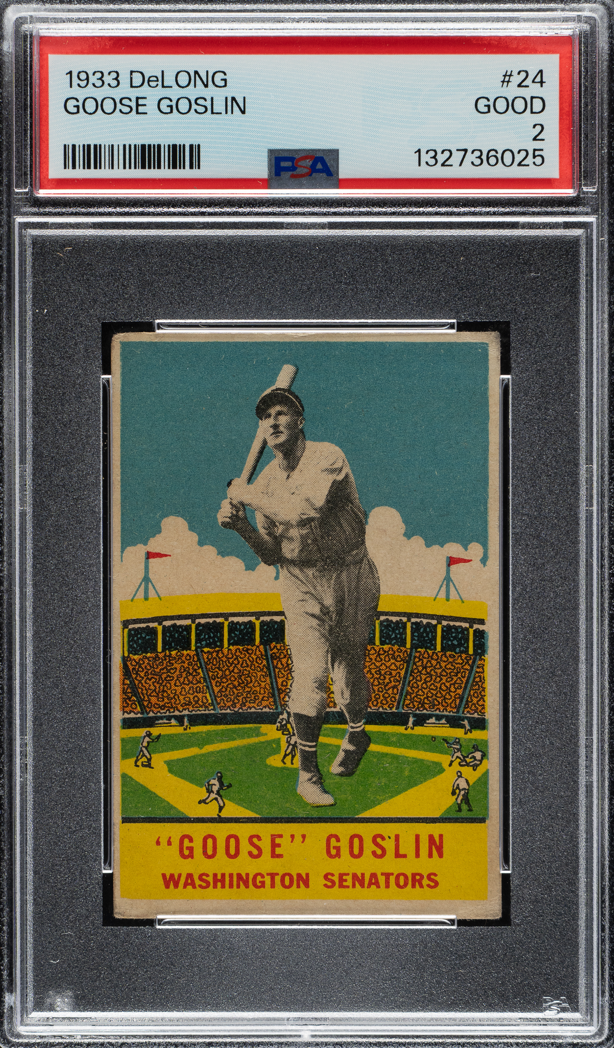 Graded GOOD 2 by PSA. Washington Senators Hall of Famer Goose Goslin.