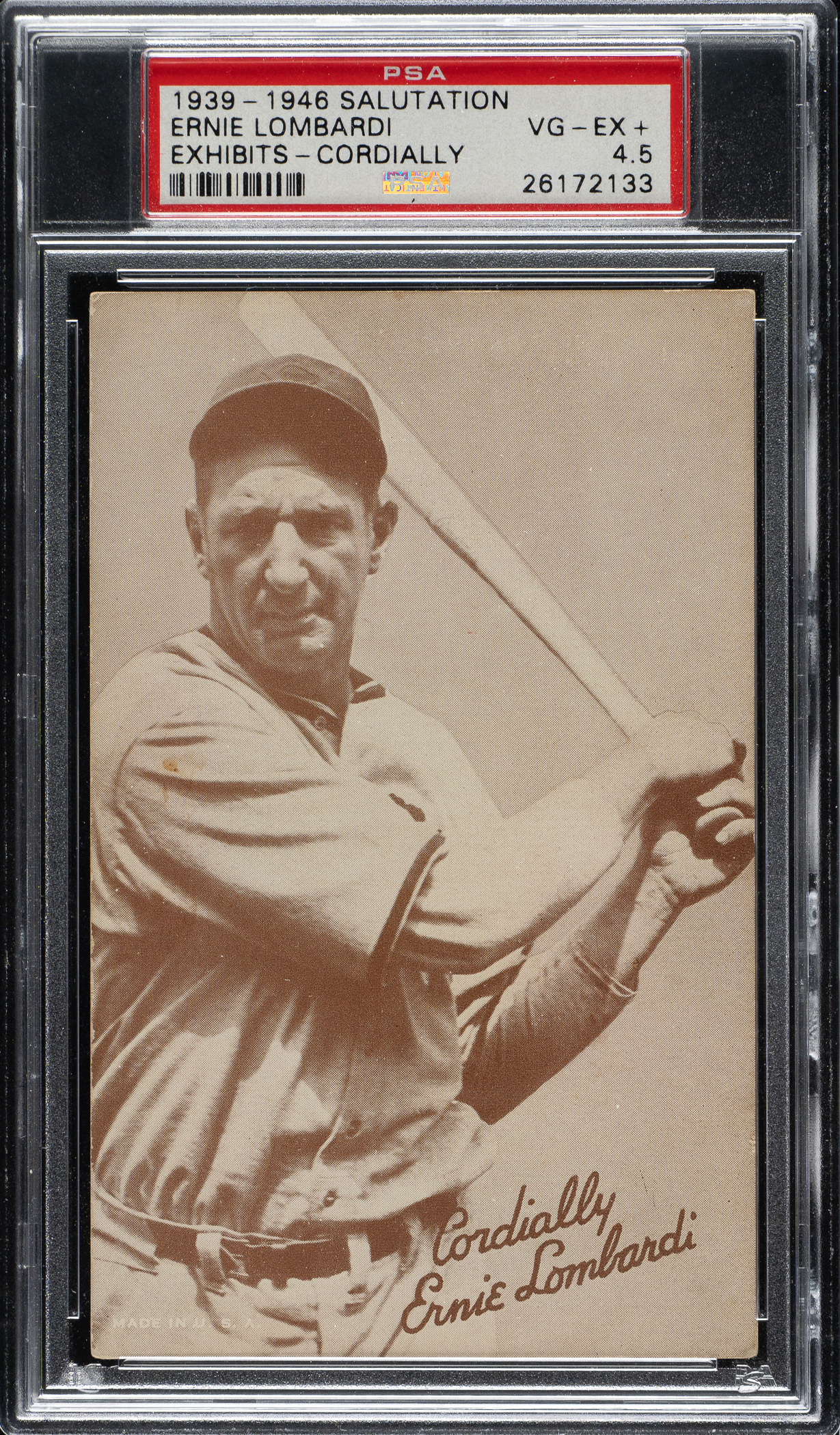 Lot # 1653: 1939-1946 W462 Salutation Exhibits Ernie Lombardi PSA VG-EX+ 4.5