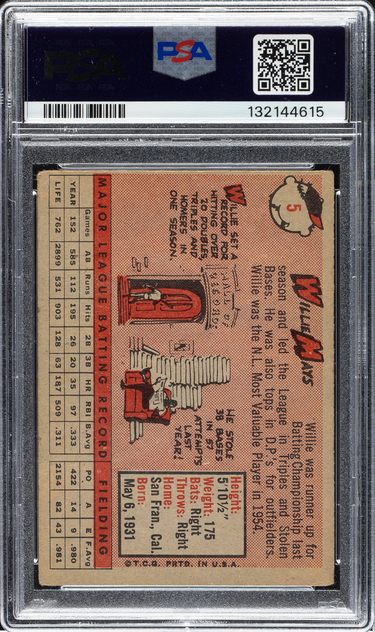 Graded GOOD 2 by PSA. San Francisco Giants Hall of Famer Willie Mays.