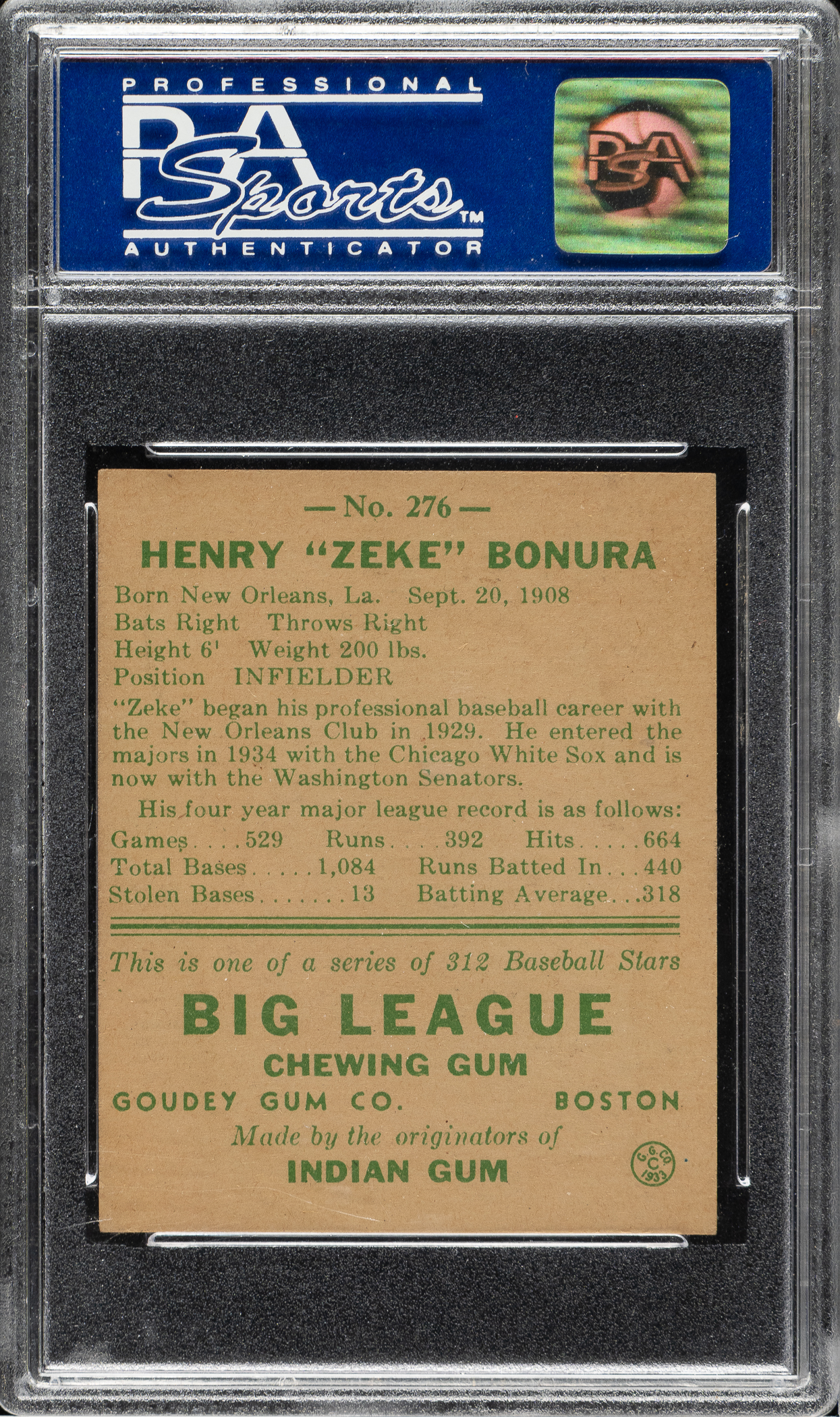 Lot # 1634: 1938 R323 Goudey "Heads-Up" #276 Zeke Bonura PSA NM 7