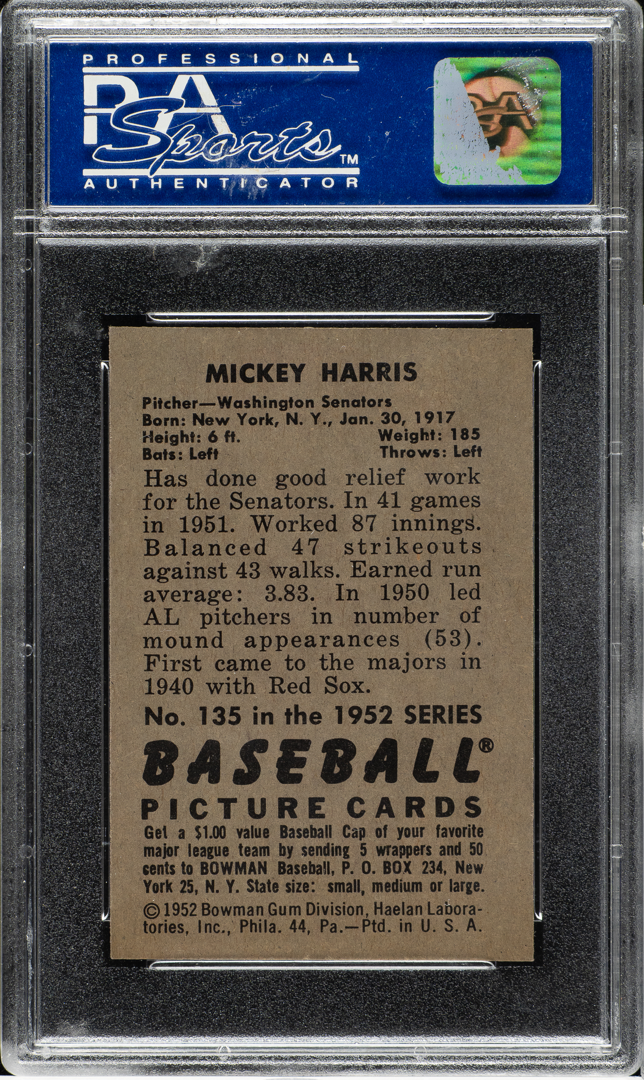 Graded MINT 9 by PSA. Washington Senators. One of only two examples graded at this level by PSA with just one higher.