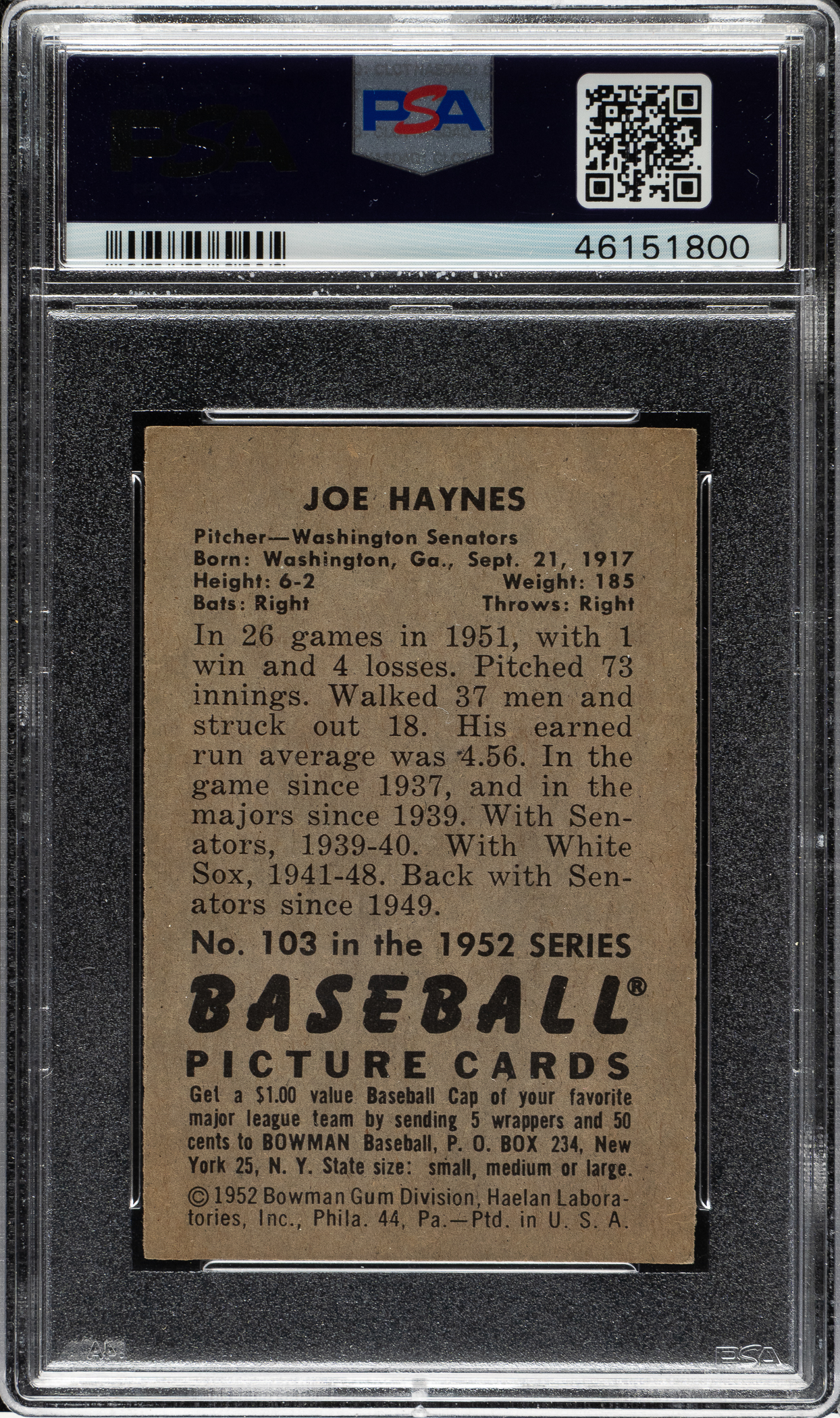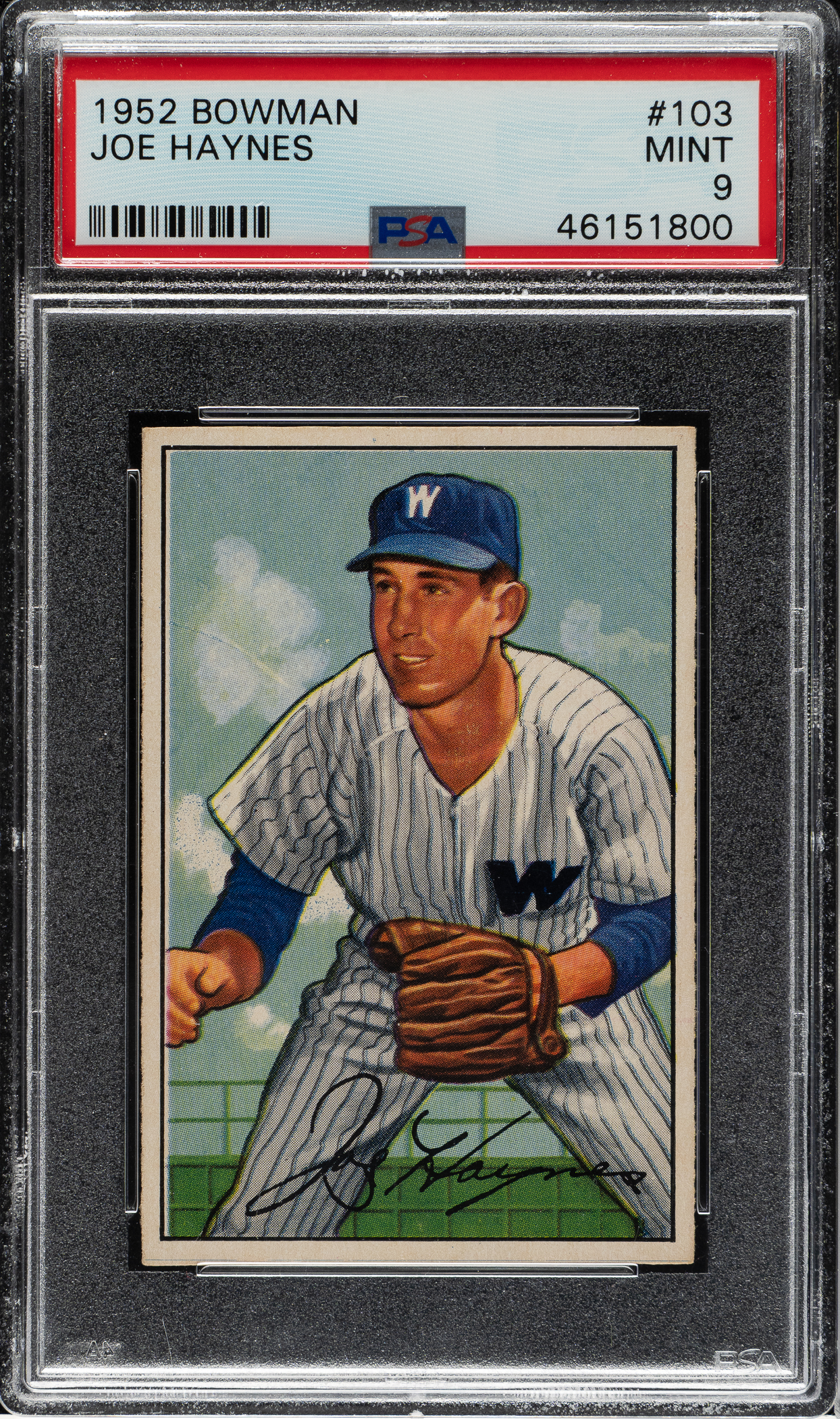 Graded MINT 9 by PSA. Washington Senators. Only one example has been graded higher by PSA to date.