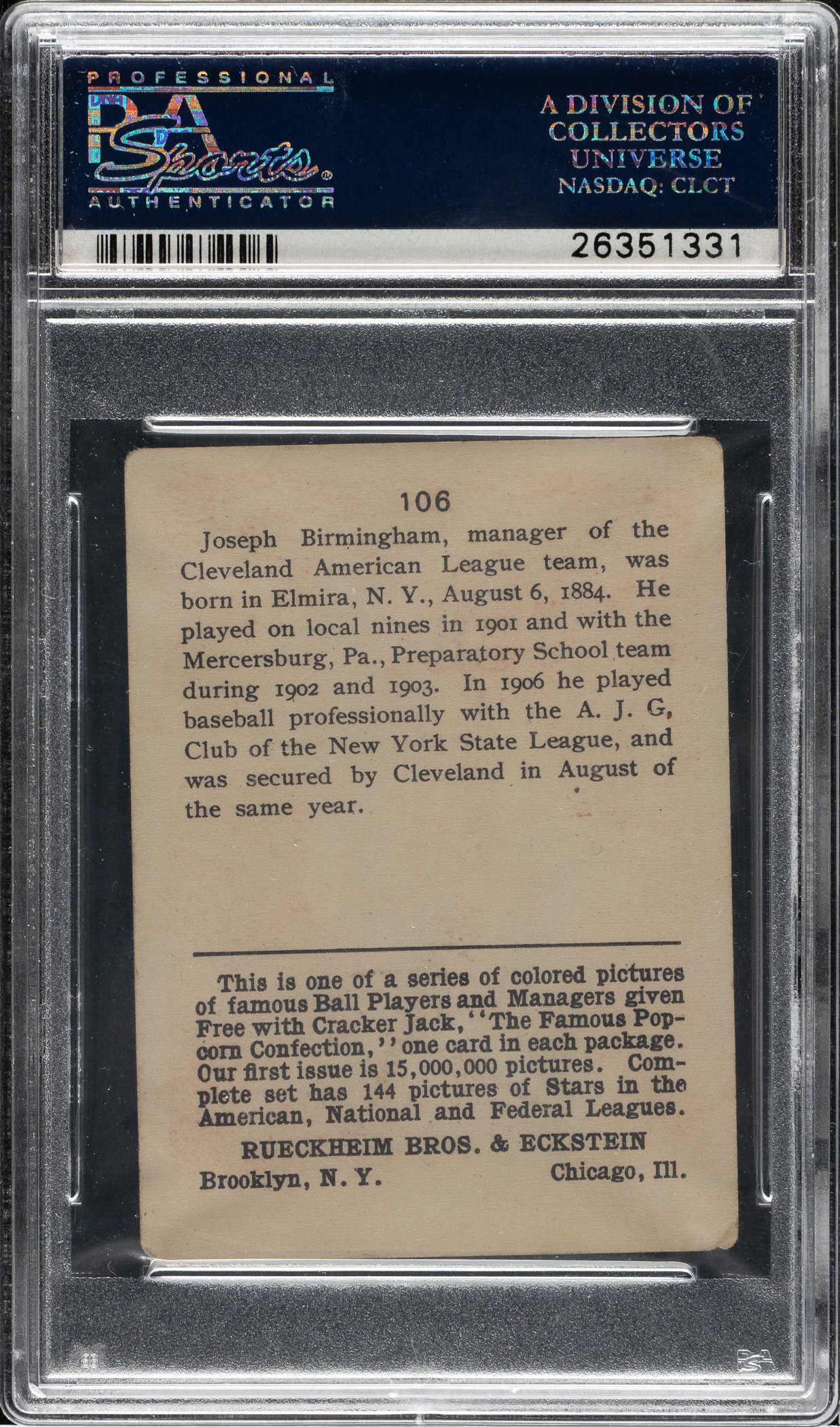 1914 E145 Cracker Jack #105 Jimmy Lavender PSA POOR 1