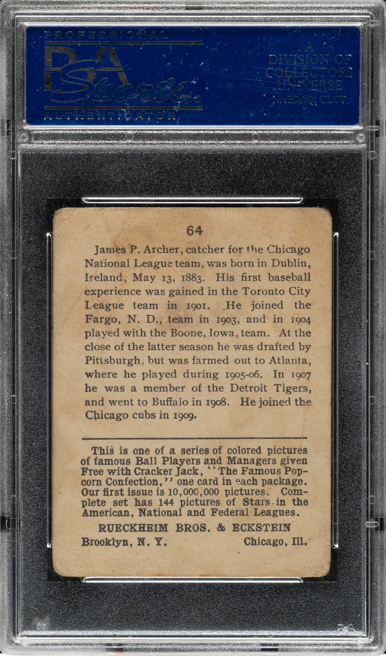 Lot # 555: 1914 E145 Cracker Jack #64 Jimmy Archer PSA GOOD 2