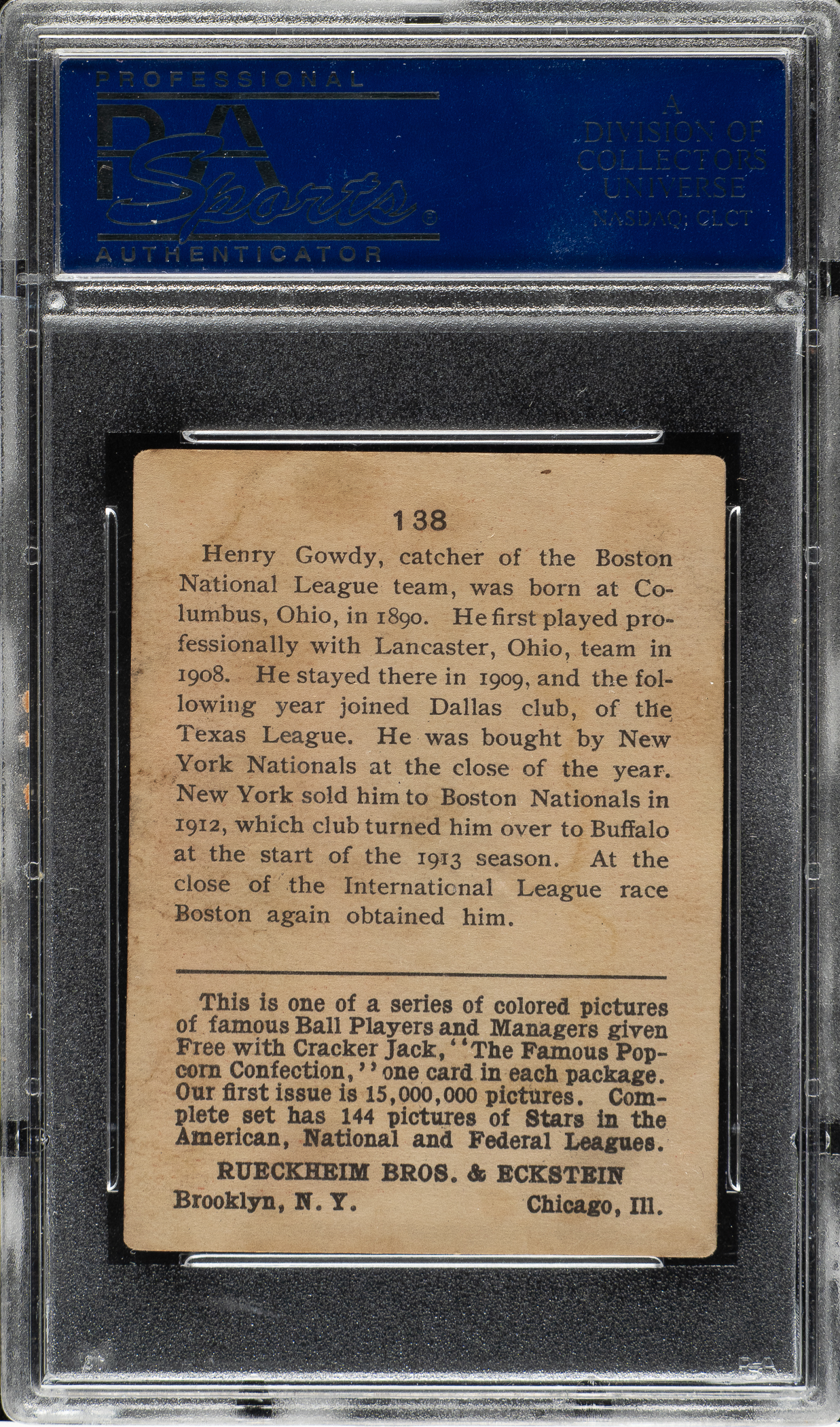 Graded VG-EX 4 by PSA. Boston Braves.