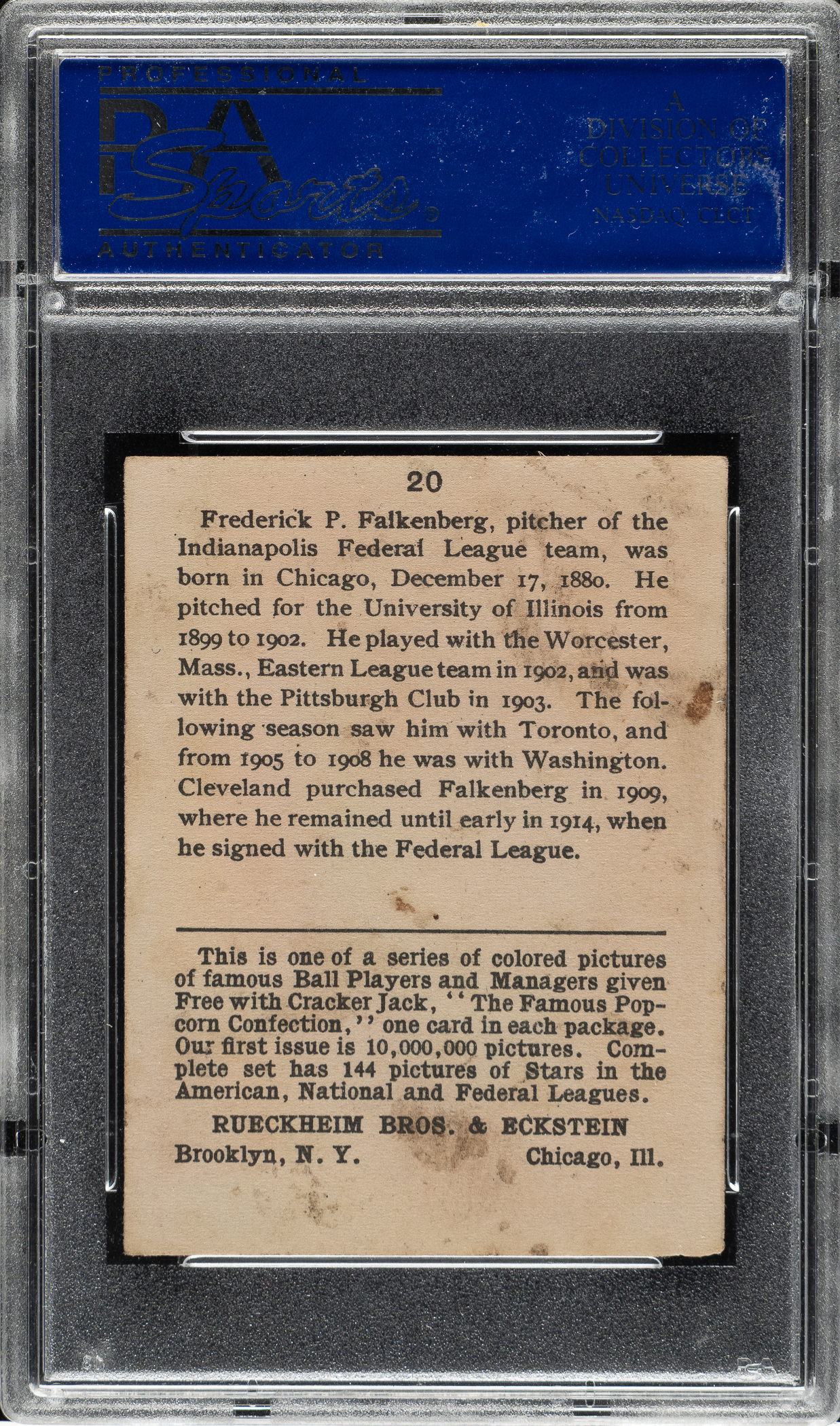 Graded EX 5 by PSA. Indianapolis Federal League. Only one example grades higher!