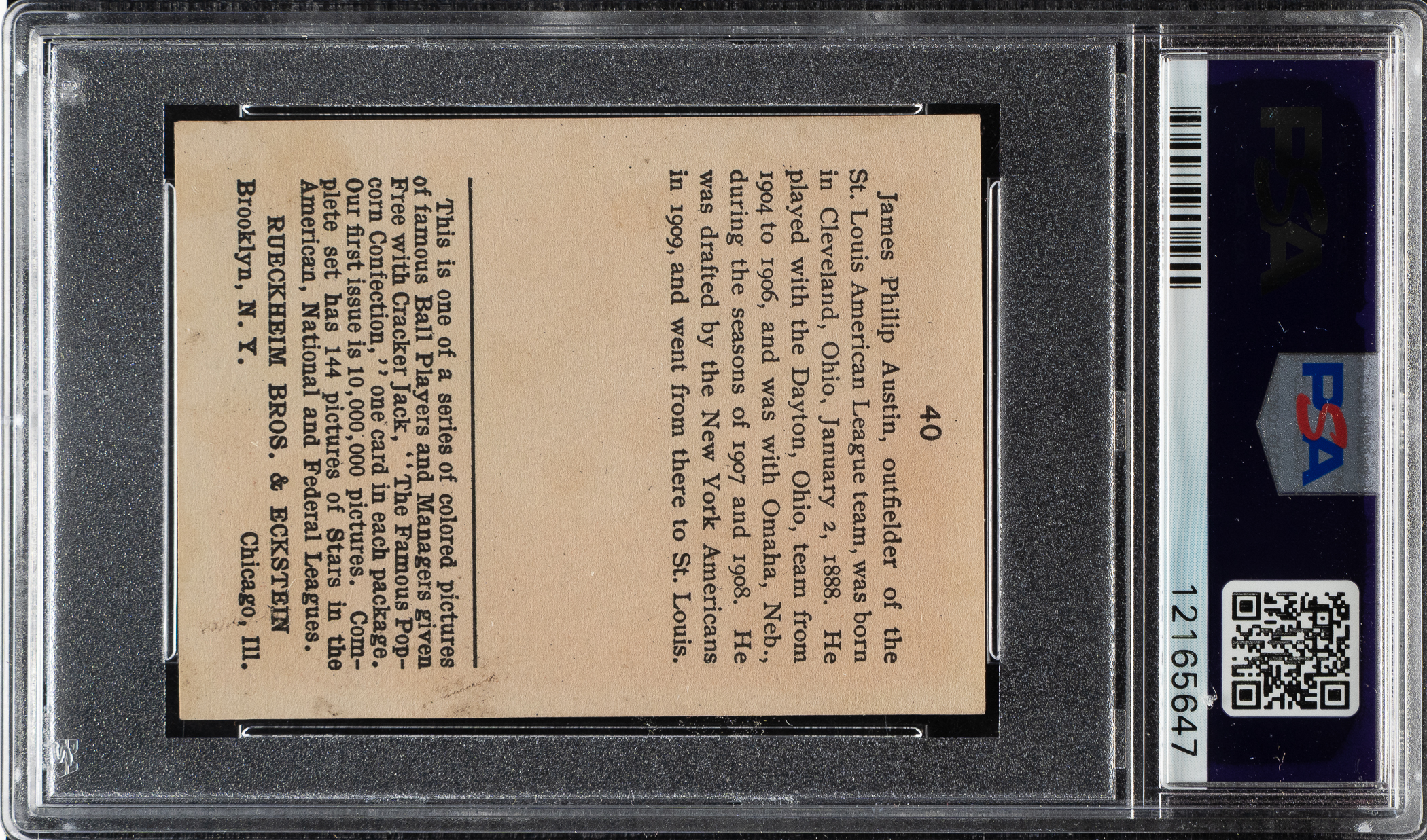 Graded EX 5 by PSA. St. Louis Browns. Only one example grades higher!