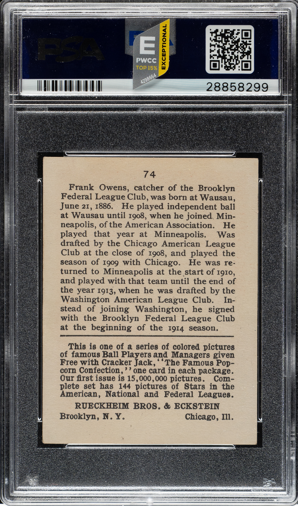 Graded VG-EX 4 by PSA. Brooklyn Federal League. Only three examples grade higher!