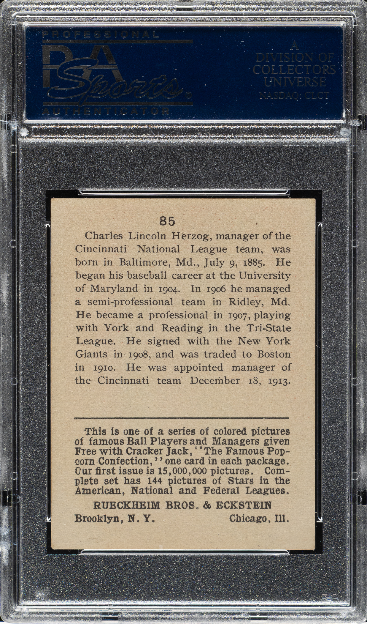 Lot # 564: 1914 E145 Cracker Jack #85 Charles Herzog PSA EX 5