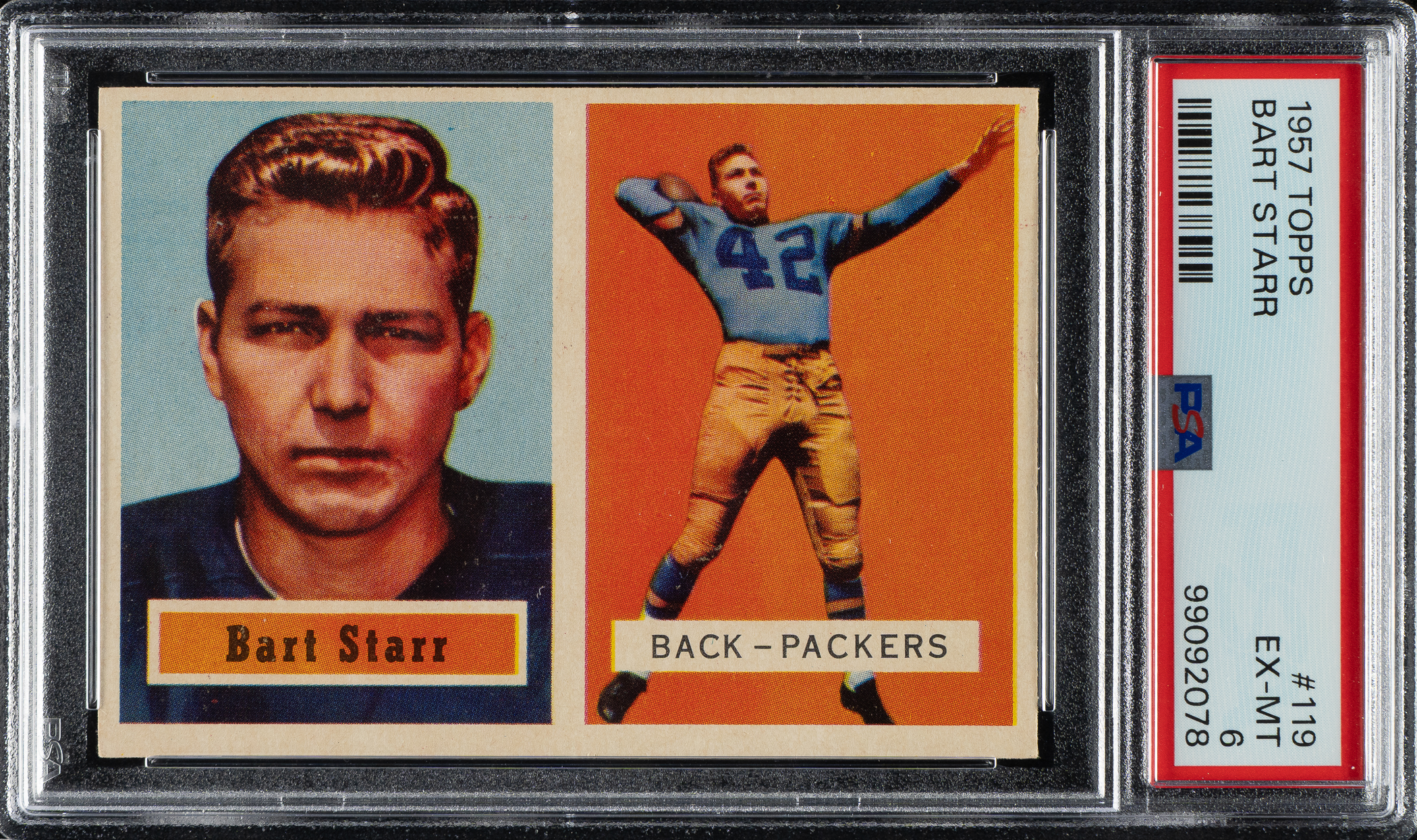 Lot 2452 1952 to 1957 Topps and Bowman Football SGC- and PSA-Graded Trio: Frank Gifford, John Sandusky, and Eddie Lebaron