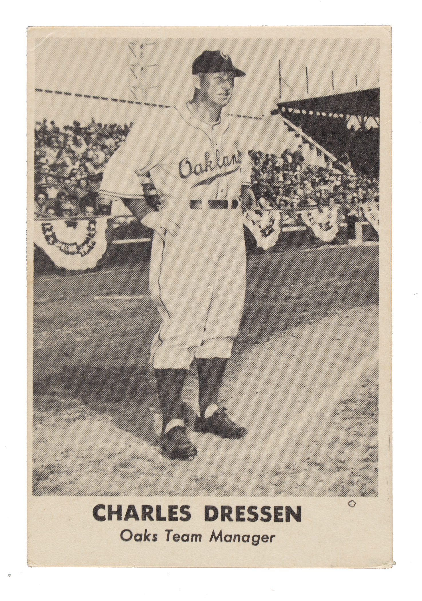 Rarely offered complete set of all thirty-two cards from the 1949 Remar Bread issue, composed only of players from the Oakland Oaks of the Pacific Coast League and highlighted by Billy Martin and Hall of Famer George Kelly. Condition is 43% Ex to Ex-Mt (including one Nr/Mt), 44% Vg to Vg-Ex, and 13% lesser. Two cards have been professionally graded and encapsulated by PSA. Keys: Dressen (Vg), Jensen (ink mark on reverse, otherwise Vg-Ex), Kelly (Vg, HOF), Martin (EX 5), and Metkovich (NM 7). The Remar Bread sets have always been highly prized as one of the premier regional Pacific Coast League card issues. There were very few card sets of any type issued during the late-1940s, and fewer still devoted to Pacific Coast League players, which naturally tend to be very scarce as they were only regionally issued. A very attractive mid-grade complete set of this scarce regional PCL issue from the 1940s. Total 32 cards.