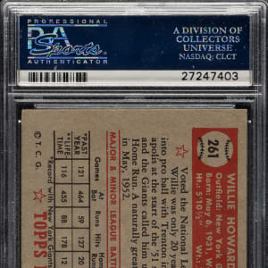 Graded EX 5 by PSA. Beautiful mid-grade example of New York Giants Hall of Famer Willie Mays from the 1952 set, one of collecting's most classic cards. This card has bold colors, outstanding registration, and strong corners with light touches of wear. Clean reverse. This is a high-quality example of one of Willie Mays' most important cards.