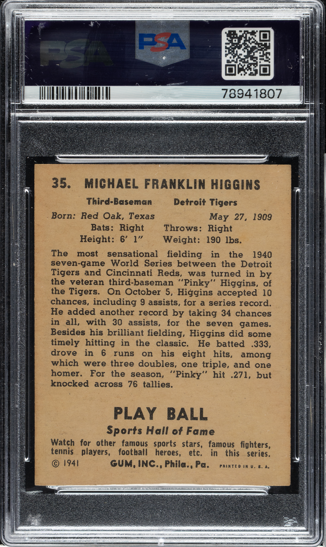 1941 R336 Play Ball #62 Elbie Fletcher PSA NM+ 7.5