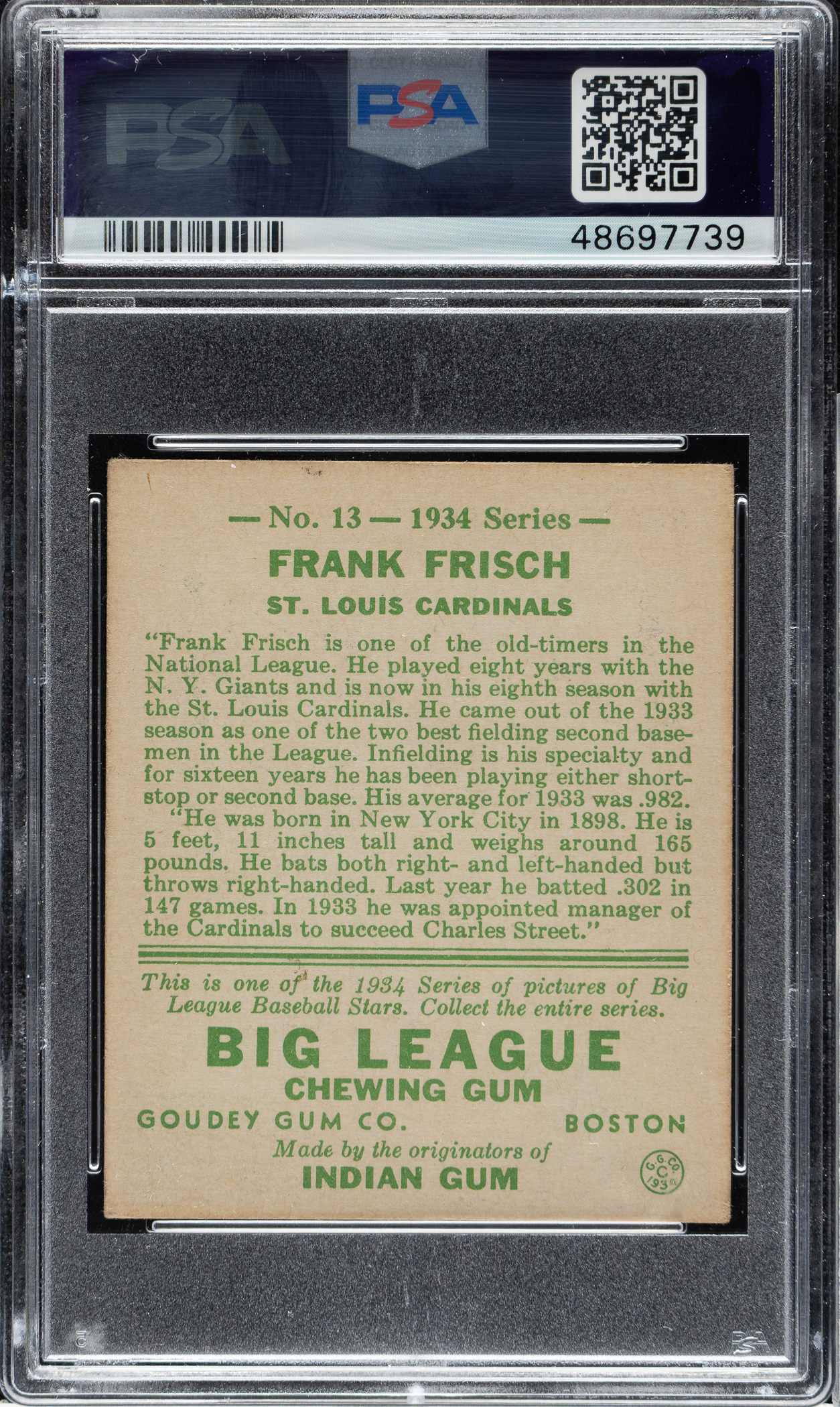 Graded VG 3 by PSA. St. Louis Cardinals Hall of Famer Frank Frisch.