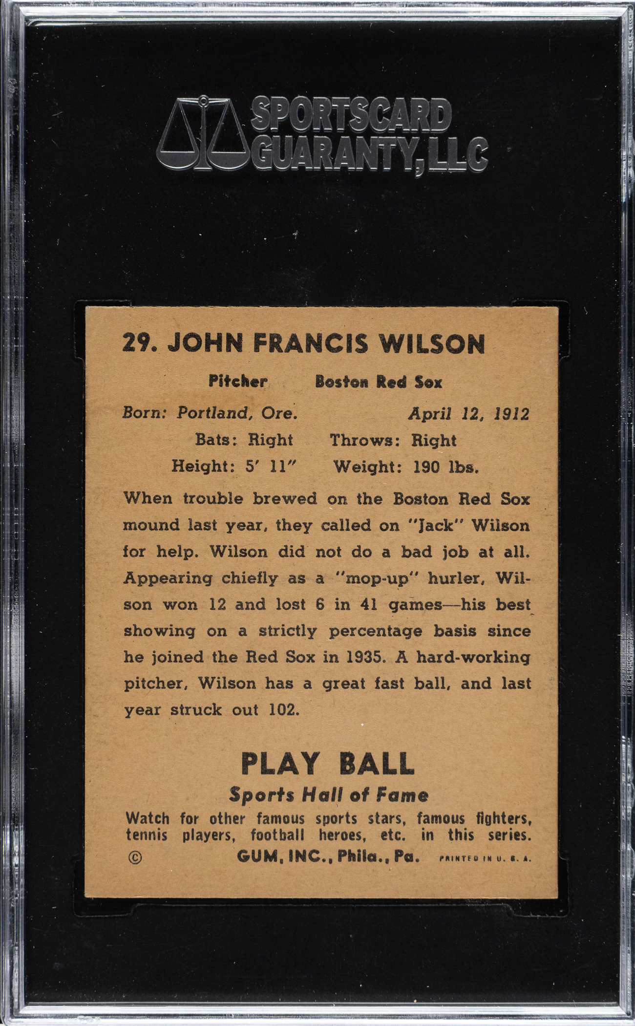 Lot # 1675: 1941 R336 Play Ball #29 Jack Wilson SGC EX/NM 6