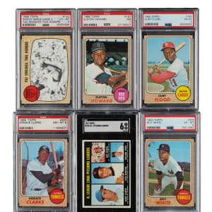 Collection of ten 1967 and 1968 Topps cards, featuring St. Louis Cardinals, Minnesota Twins, and Boston Red Sox Hall of Famers Bob Gibson, Harmon Killebrew, and Carl Yastrzemski. Each card has been graded and encapsulated by SGC (2) or PSA (8). This collection consists of the following: 1) 1967 Topps (1 card): #236 NL Pitching Leaders with Koufax/Marichal/Gibson/Perry (SGC EX/NM 6). 2) 1968 Topps (9 cards): #100 Gibson (VG-EX 4), 152 WS Game 2 with Yastrzemski (EX-MT 6), 167 (NM 7), 180 (VG-EX 4), 220 Killebrew (SGC EX/NM+ 6.5), 250 Yastrzemski (EX-MT 6), 263 (NM-MT 8), 520 Brock (EX 5), and 546 (EX-MT 6). Total: 10 cards.