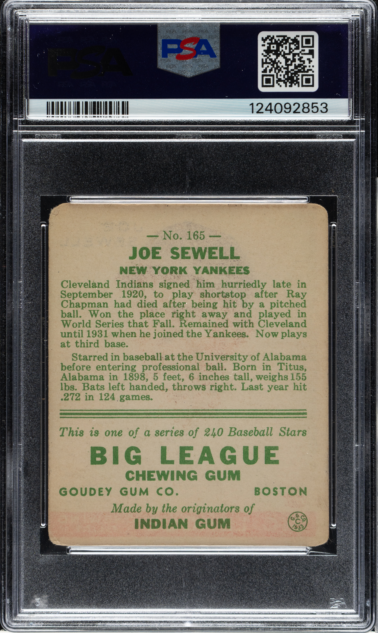 Lot # 1403: 1933 R319 Goudey #165 Joe Sewell PSA POOR 1