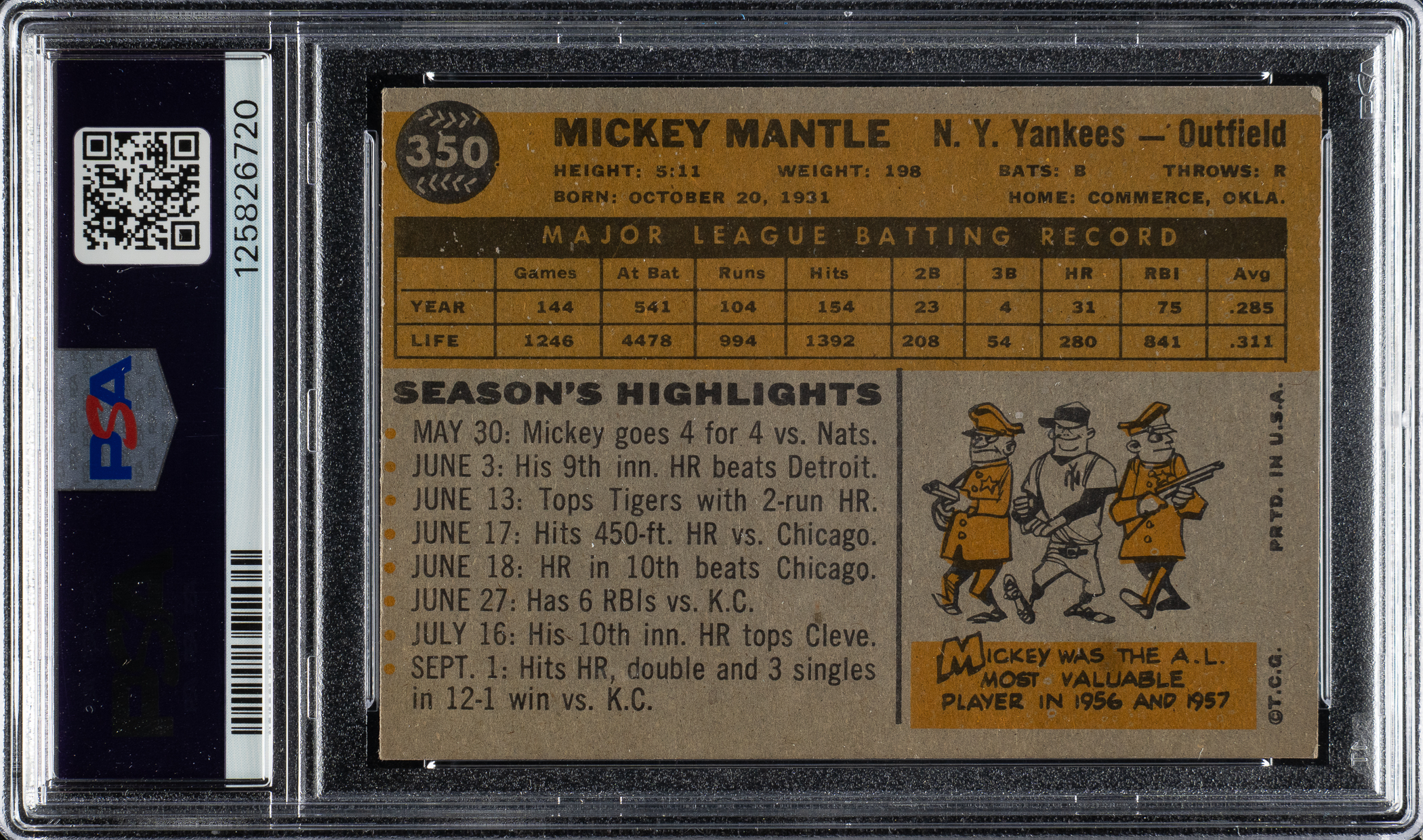 Lot # 1473: 1960 Topps #350 Mickey Mantle PSA VG-EX 4
