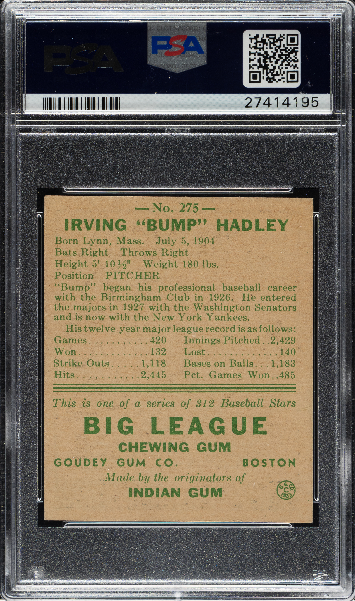 Graded NM 7 by PSA. New York Yankees.