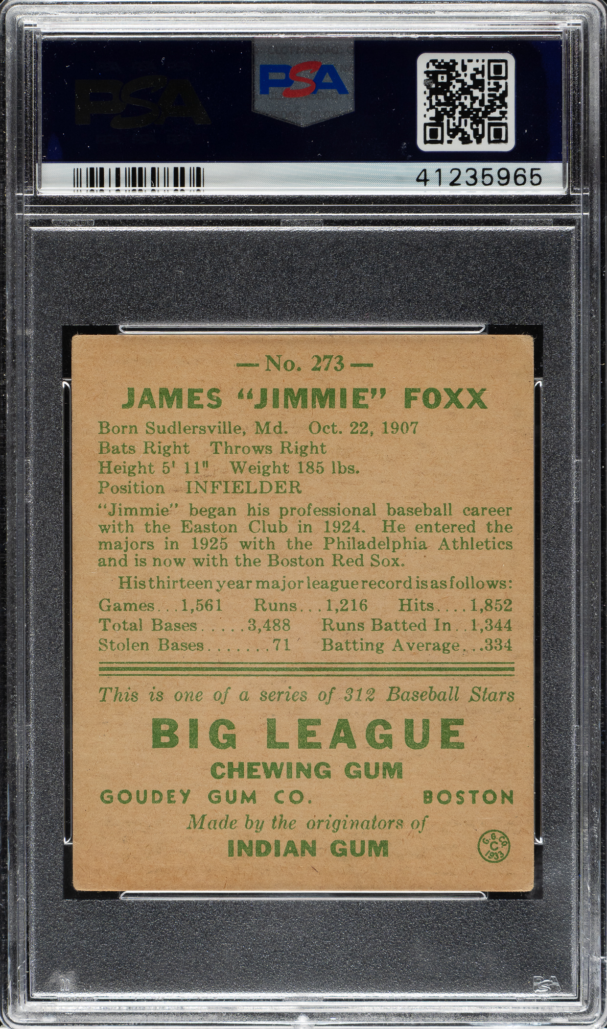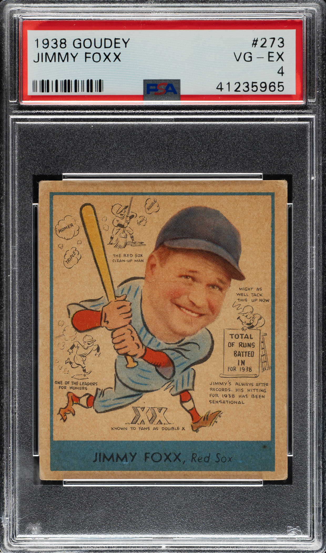 Graded VG-EX 4 by PSA. Boston Red Sox Hall of Famer Jimmie Foxx.