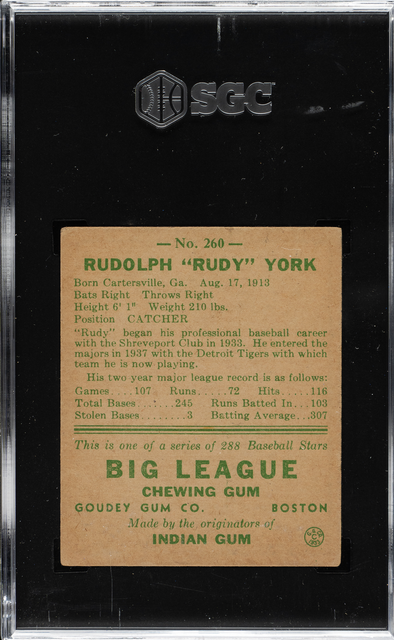 1938 R323 Goudey "Heads-Up" #258 Bobby Doerr SGC GOOD+ 2.5