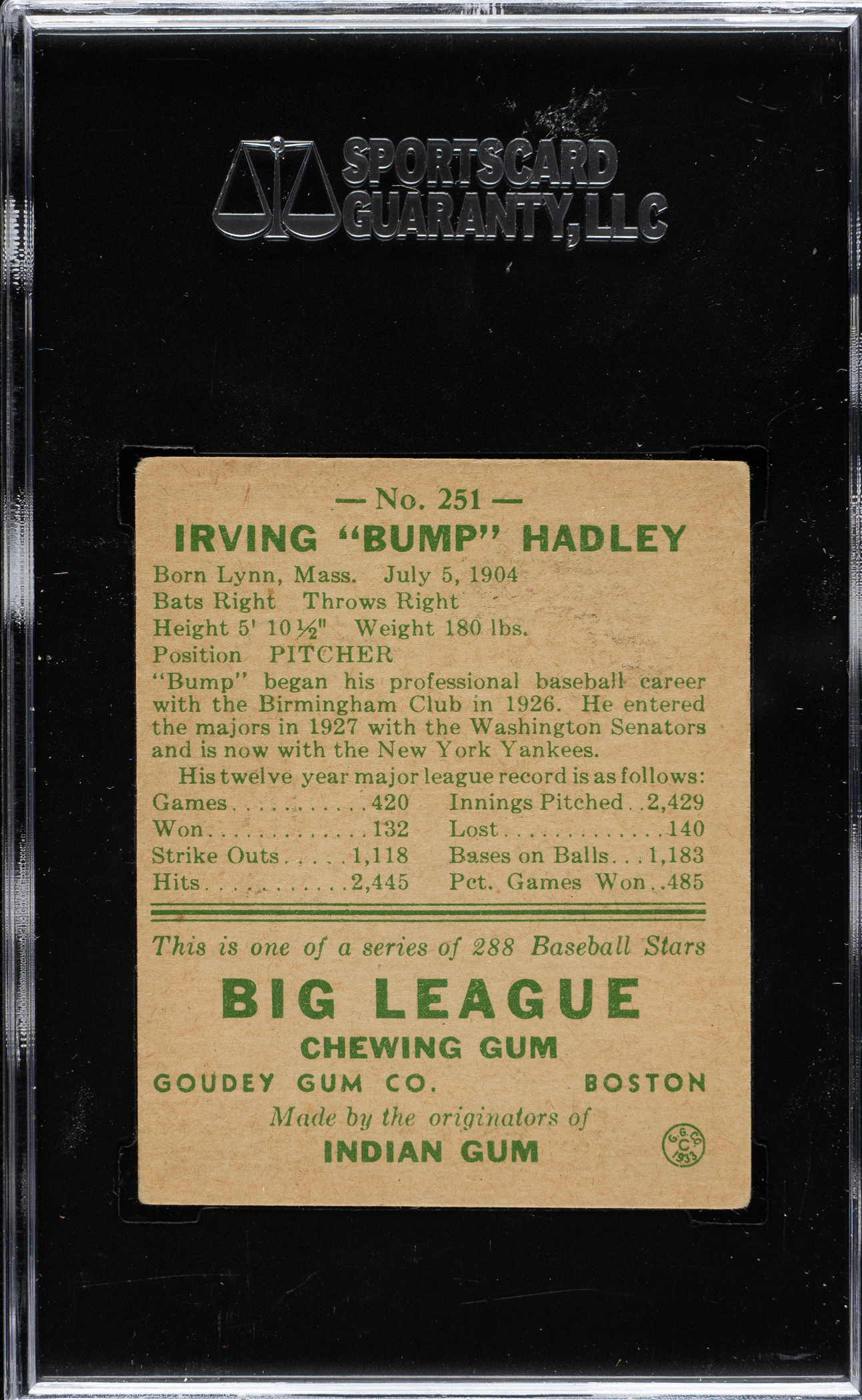 1938 R323 Goudey "Heads-Up" #254 Van Lingle Mungo SGC EX 60