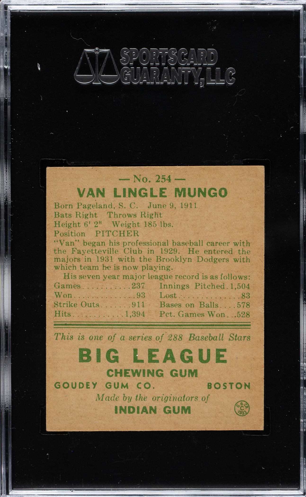 Graded EX 60 by SGC. Brooklyn Dodgers.