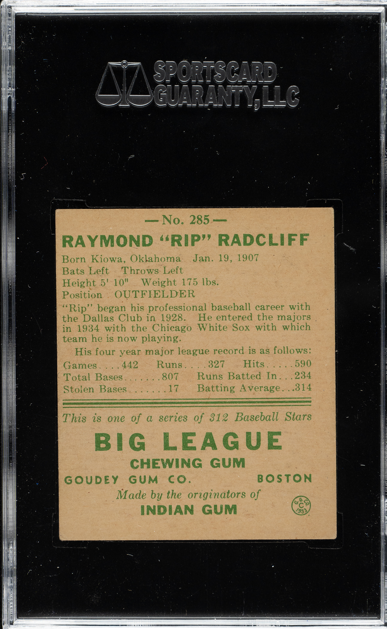 1938 R323 Goudey "Heads-Up" #251 Bump Hadley SGC EX 60