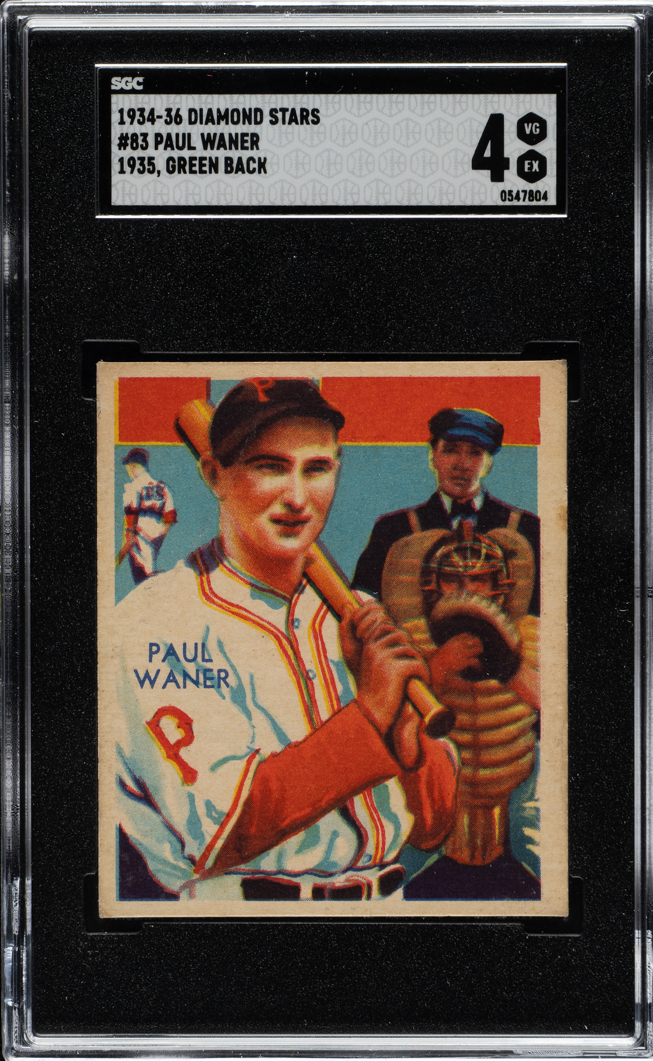 Lot # 1594: 1934-1936 R327 Diamond Stars #83 Paul Waner (1935 Green Back) SGC VG/EX 4