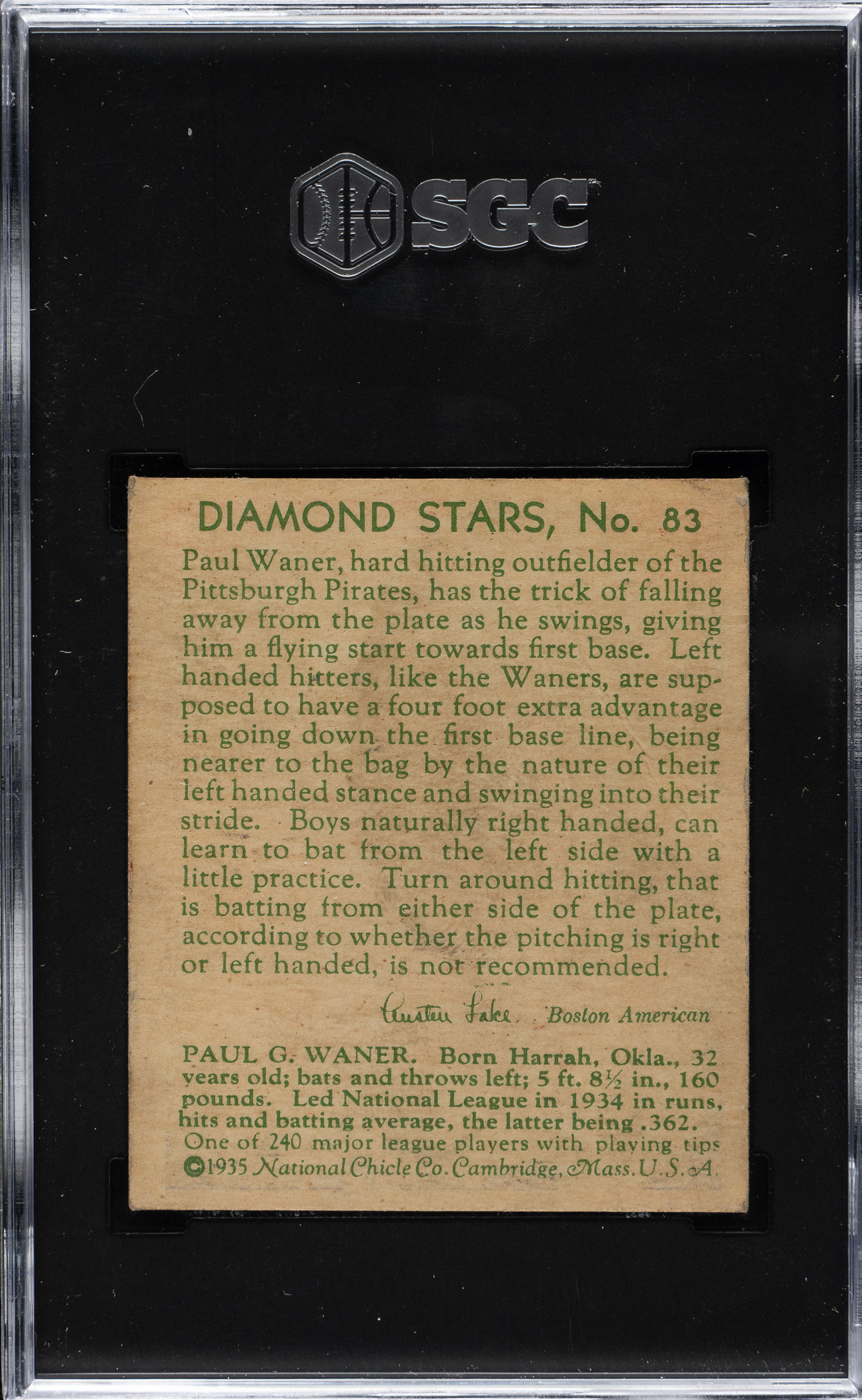 Graded VG/EX 4 by SGC. Pittsburgh Pirates Hall of Famer Paul Waner.