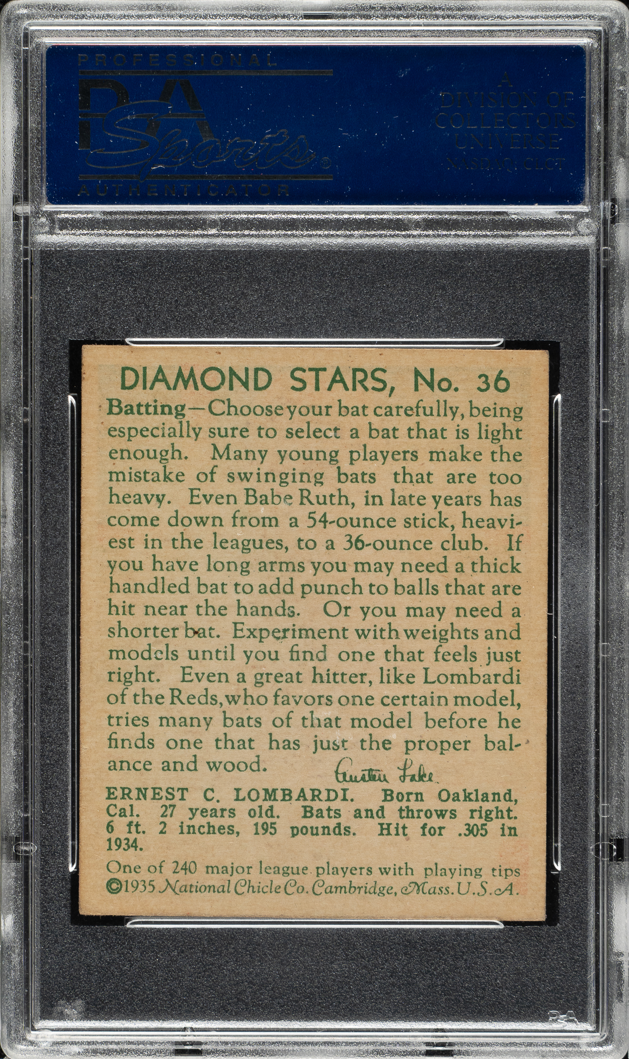 Lot # 1565: 1934-1936 R327 Diamond Stars #36 Ernie Lombardi PSA EX-MT 6