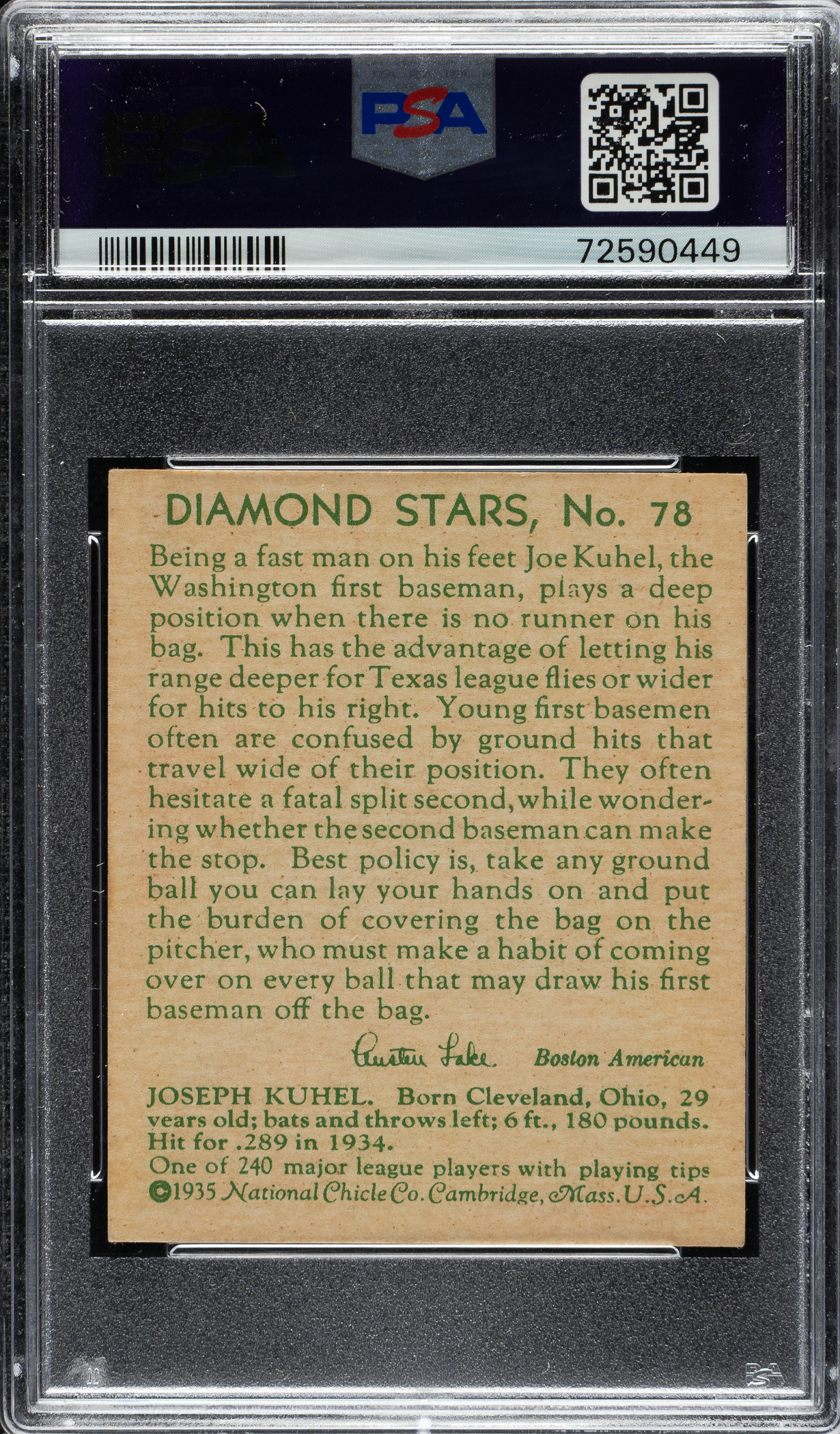 1934-1936 R327 Diamond Stars #23 Bill Hallahan (1935 Green Back) PSA EX 5