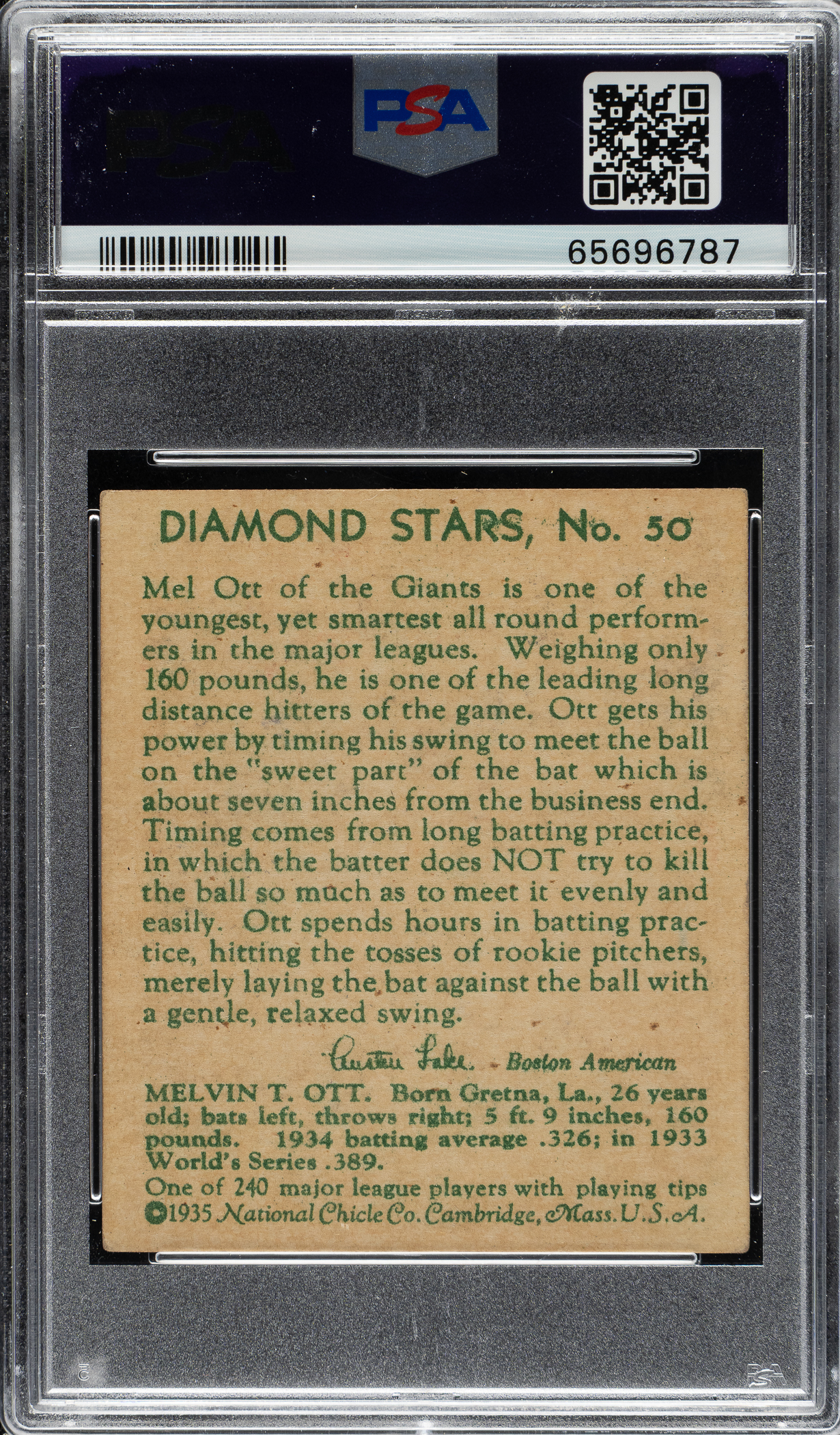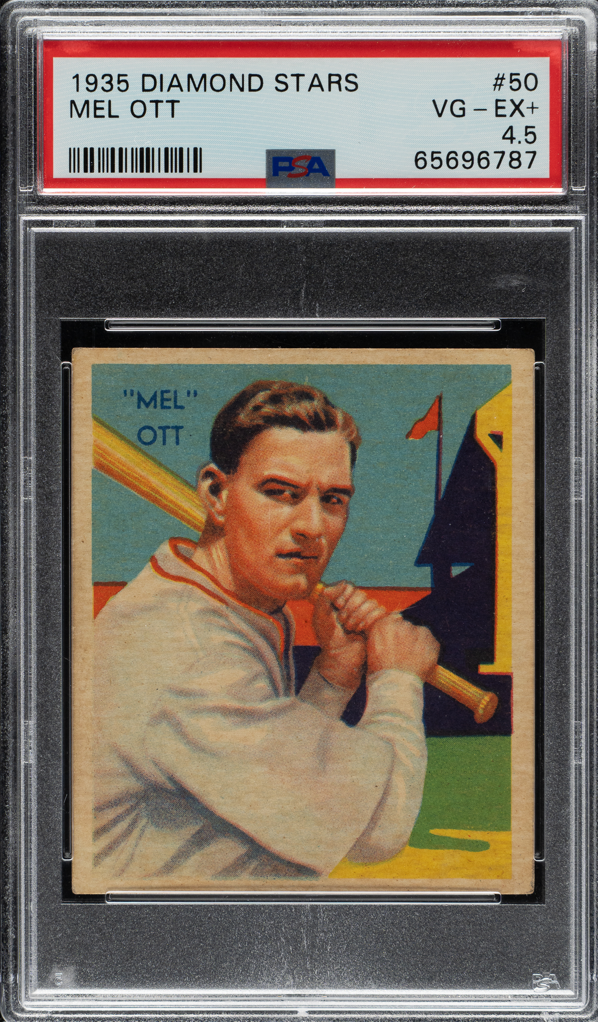 Graded VG-EX+ 4.5 by PSA. New York Giants Hall of Famer Mel Ott.