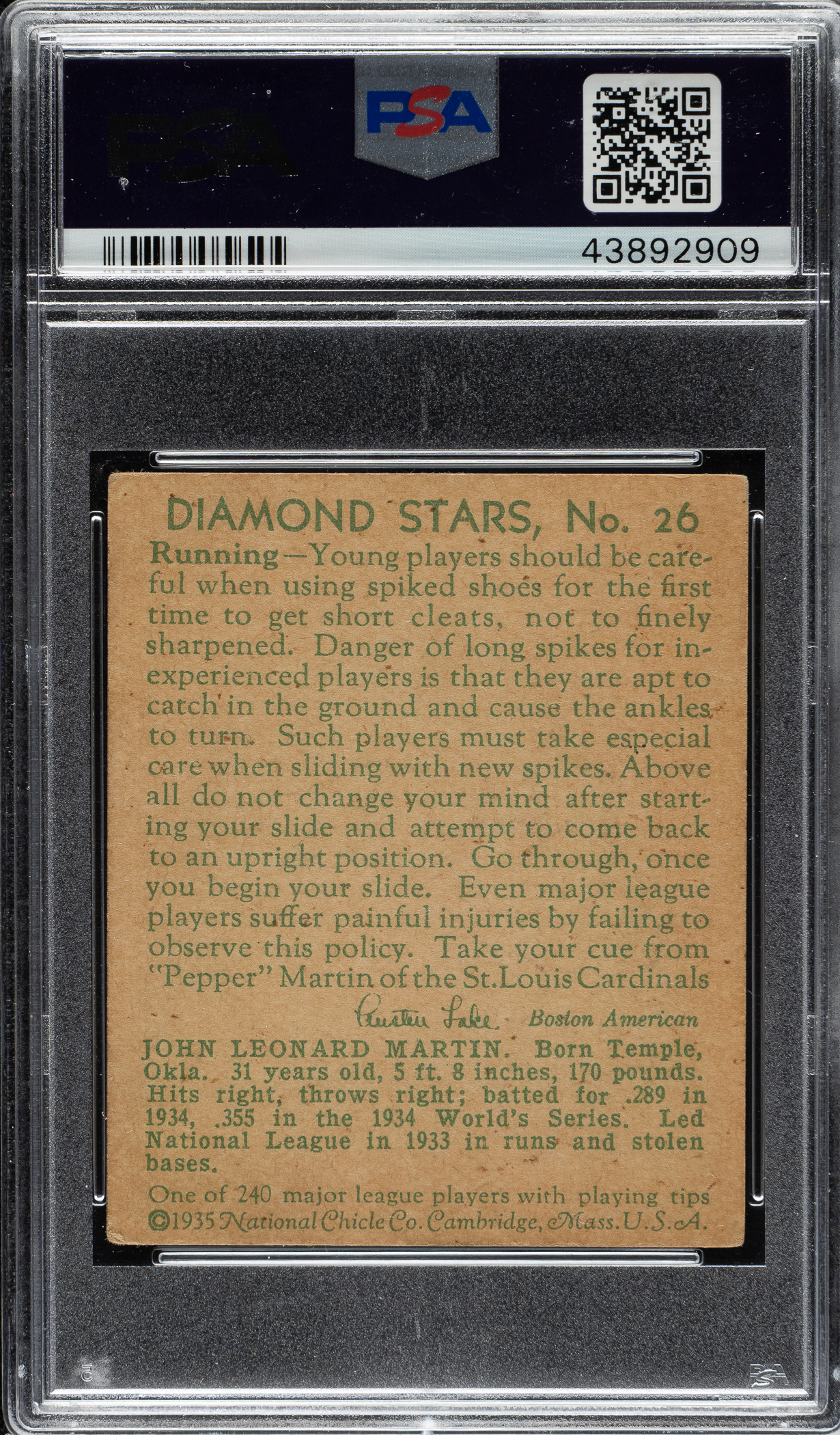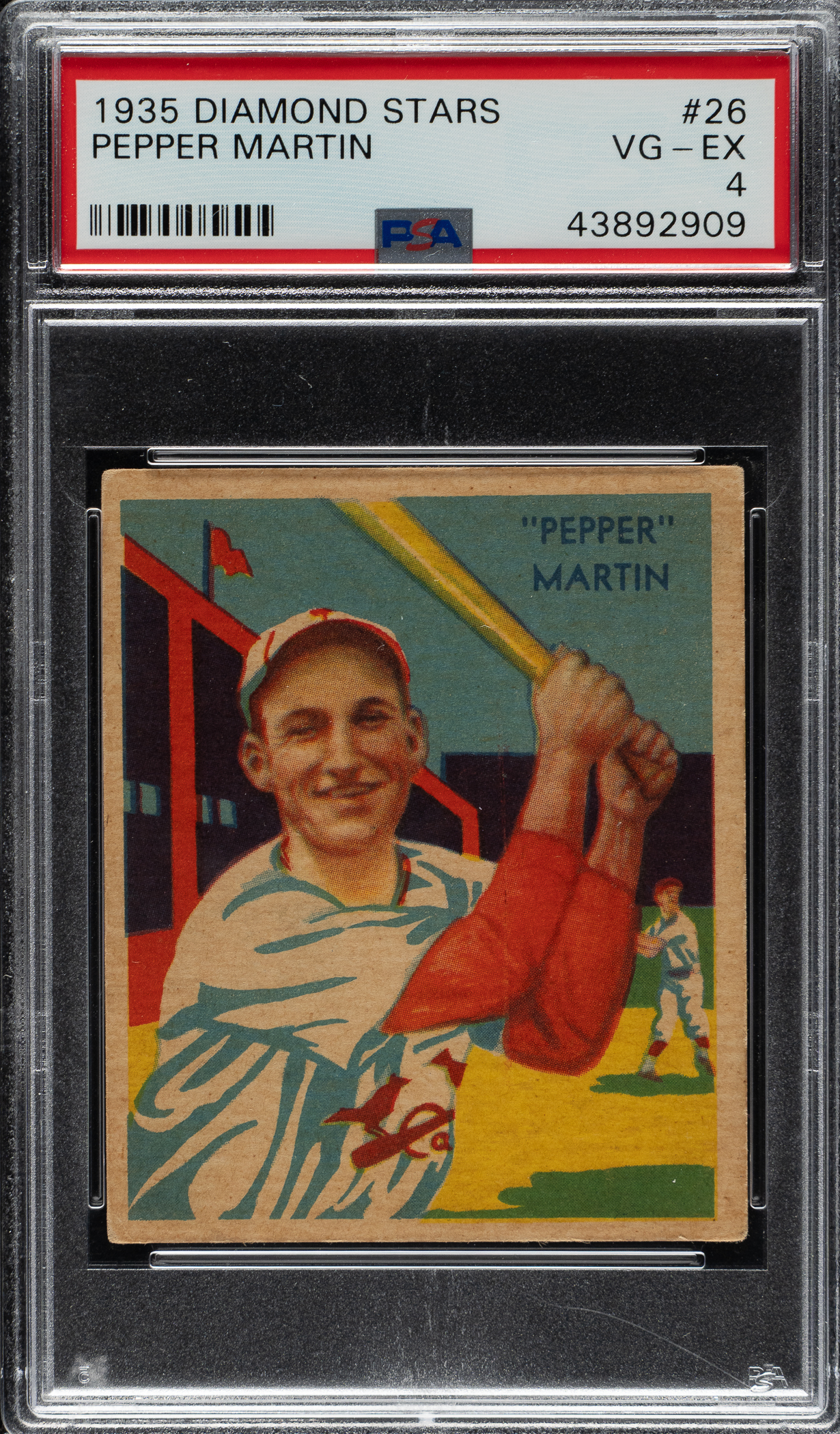 Lot # 1549: 1934-1936 R327 Diamond Stars #26 Pepper Martin (1935 Green Back) PSA VG-EX 4