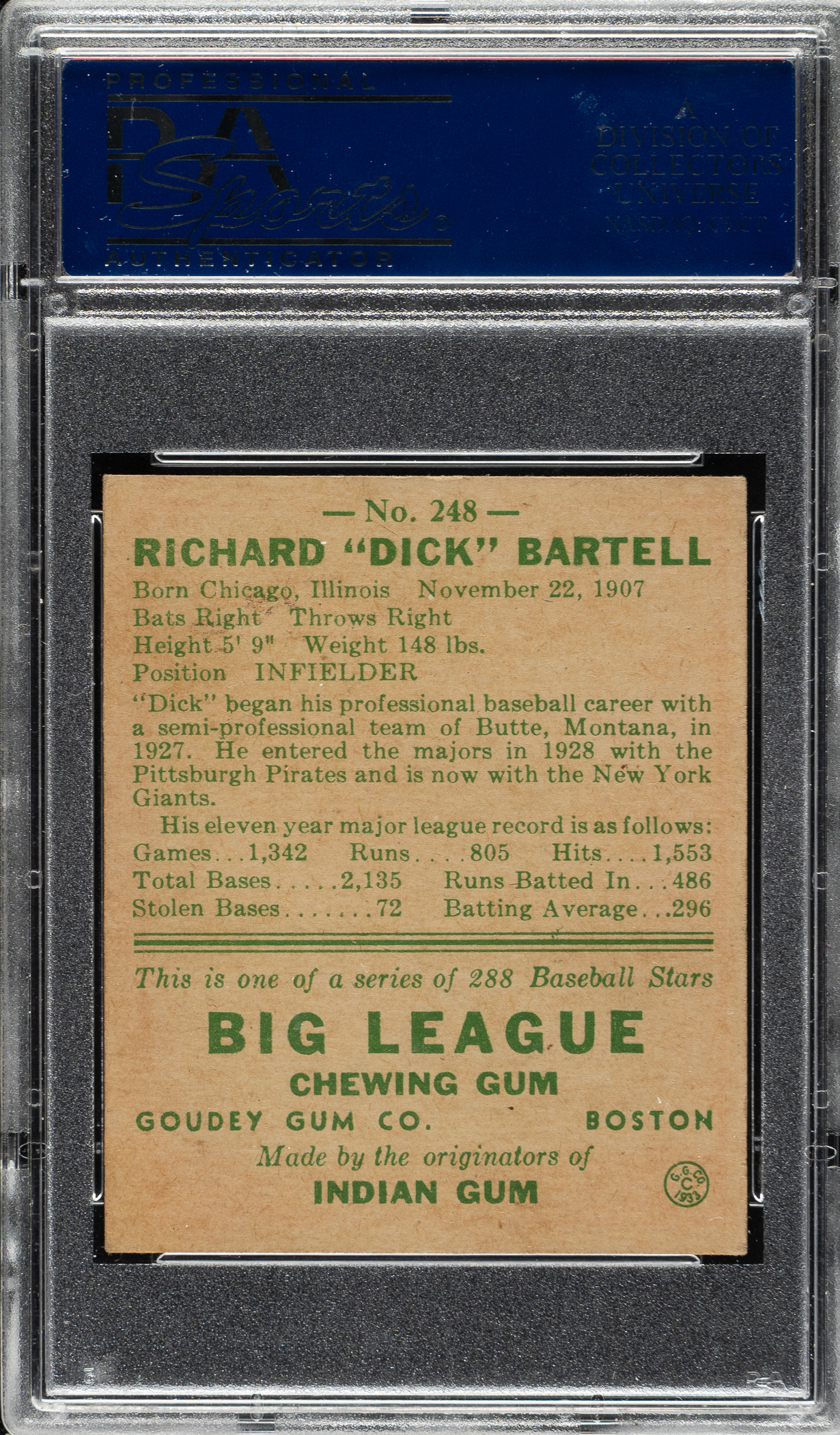 1938 R323 Goudey "Heads-Up" #255 Julius Solters PSA NM 7
