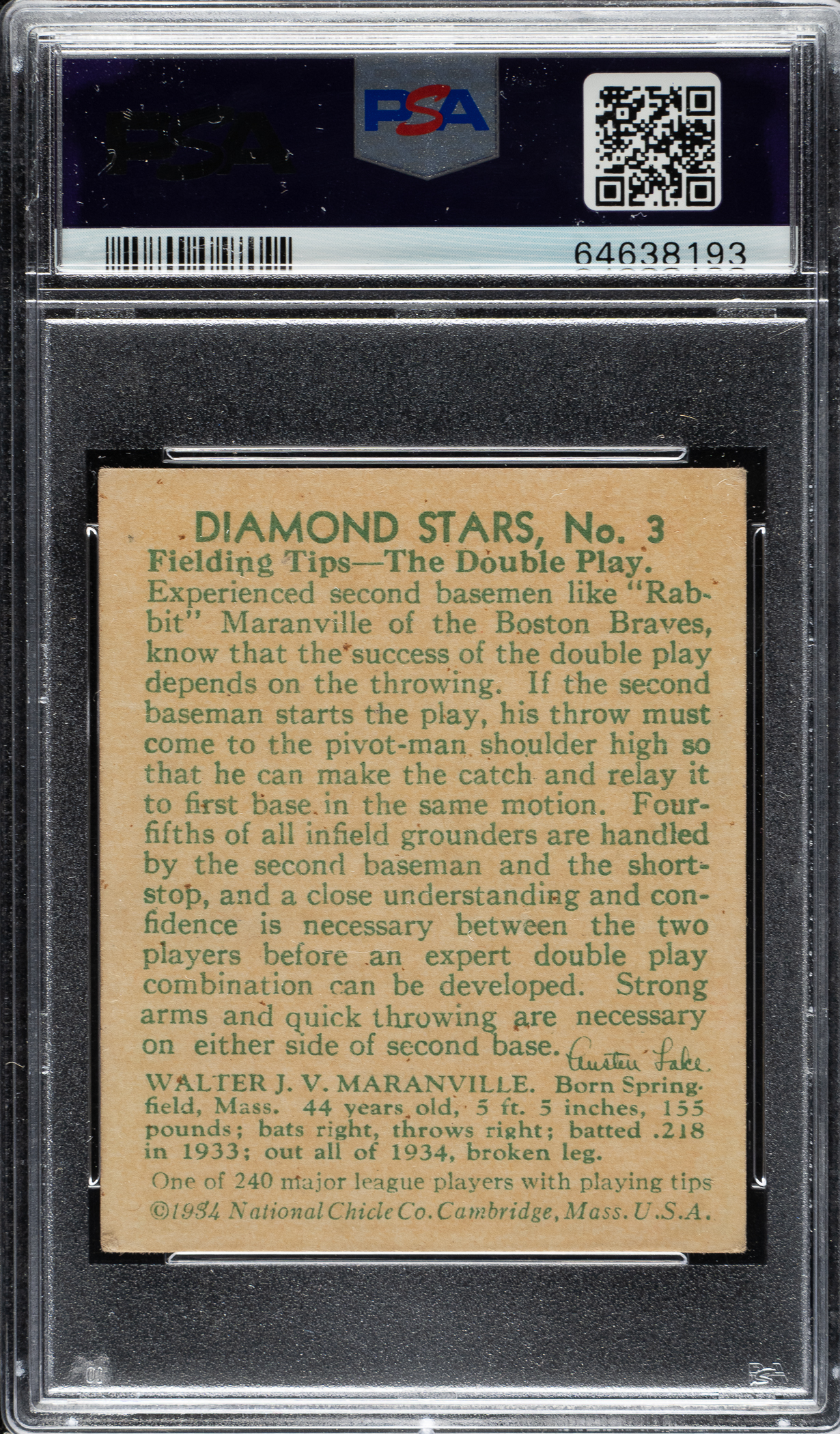 Graded VG-EX 4 by PSA. Boston Braves Hall of Famer Rabbit Maranville.