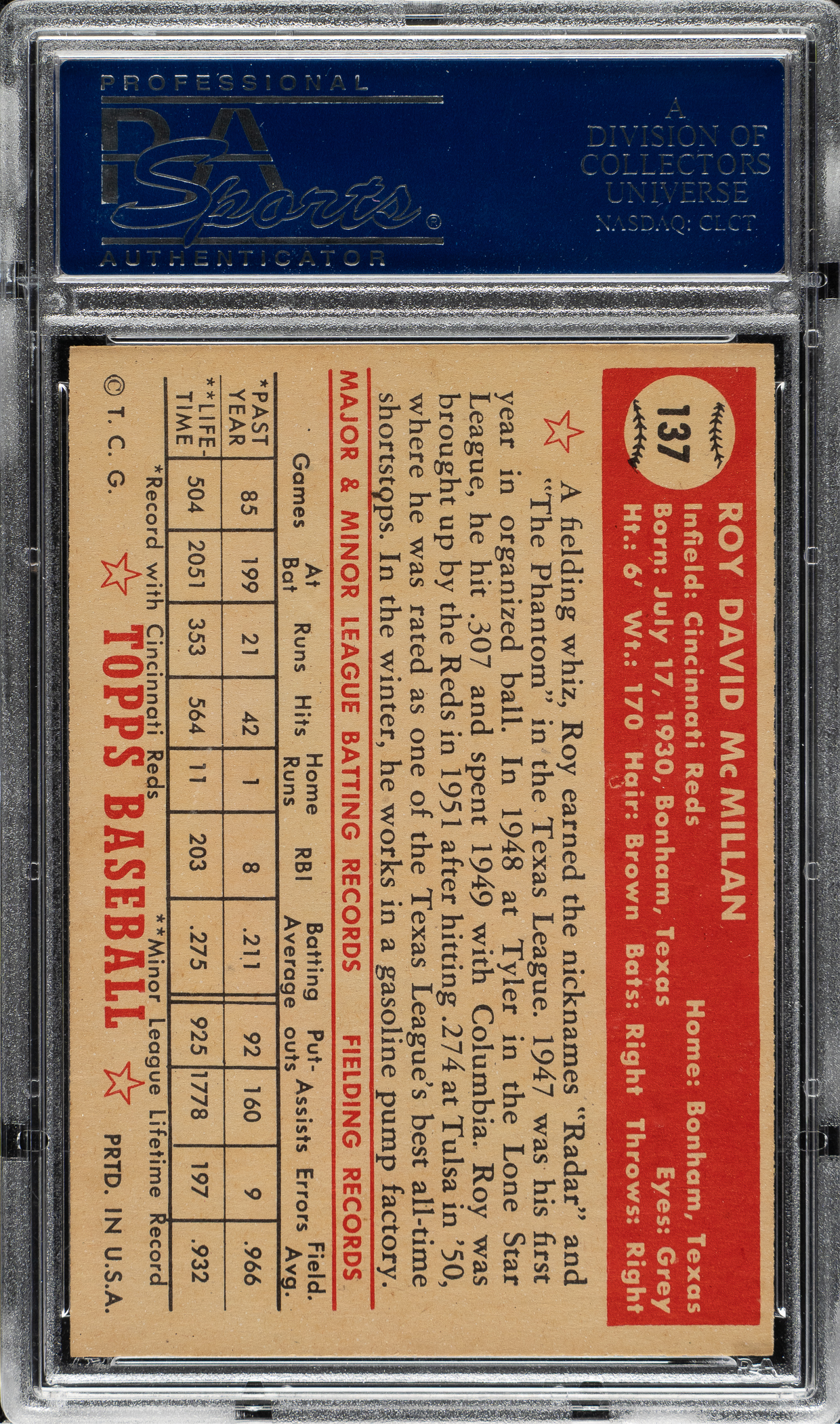 Graded NM+ 7.5 by PSA. Cincinnati Reds.
