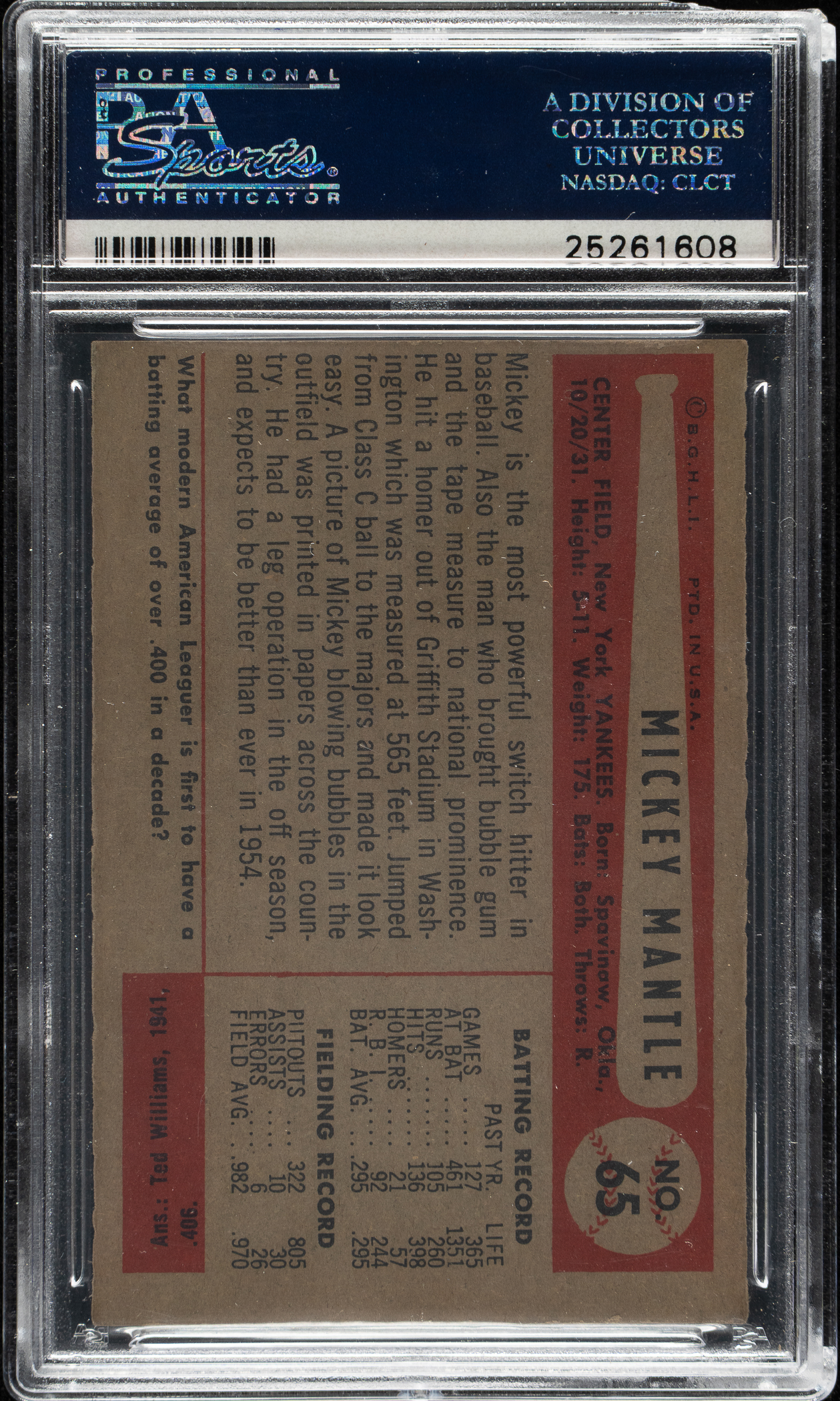 Graded VG-EX 4 by PSA. New York Yankees Hall of Famer Mickey Mantle.