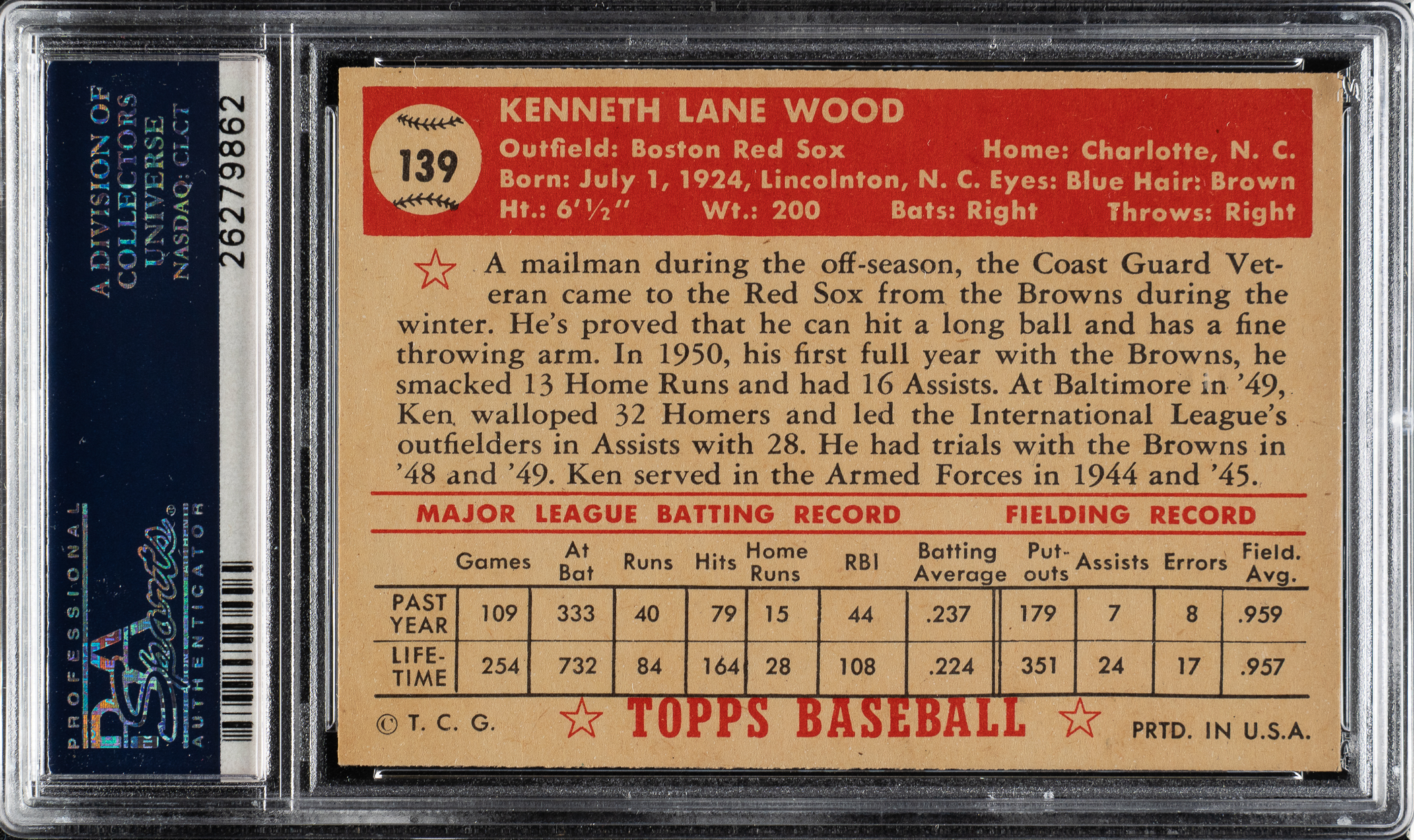 Graded NM+ 7.5 by PSA. Boston Red Sox.