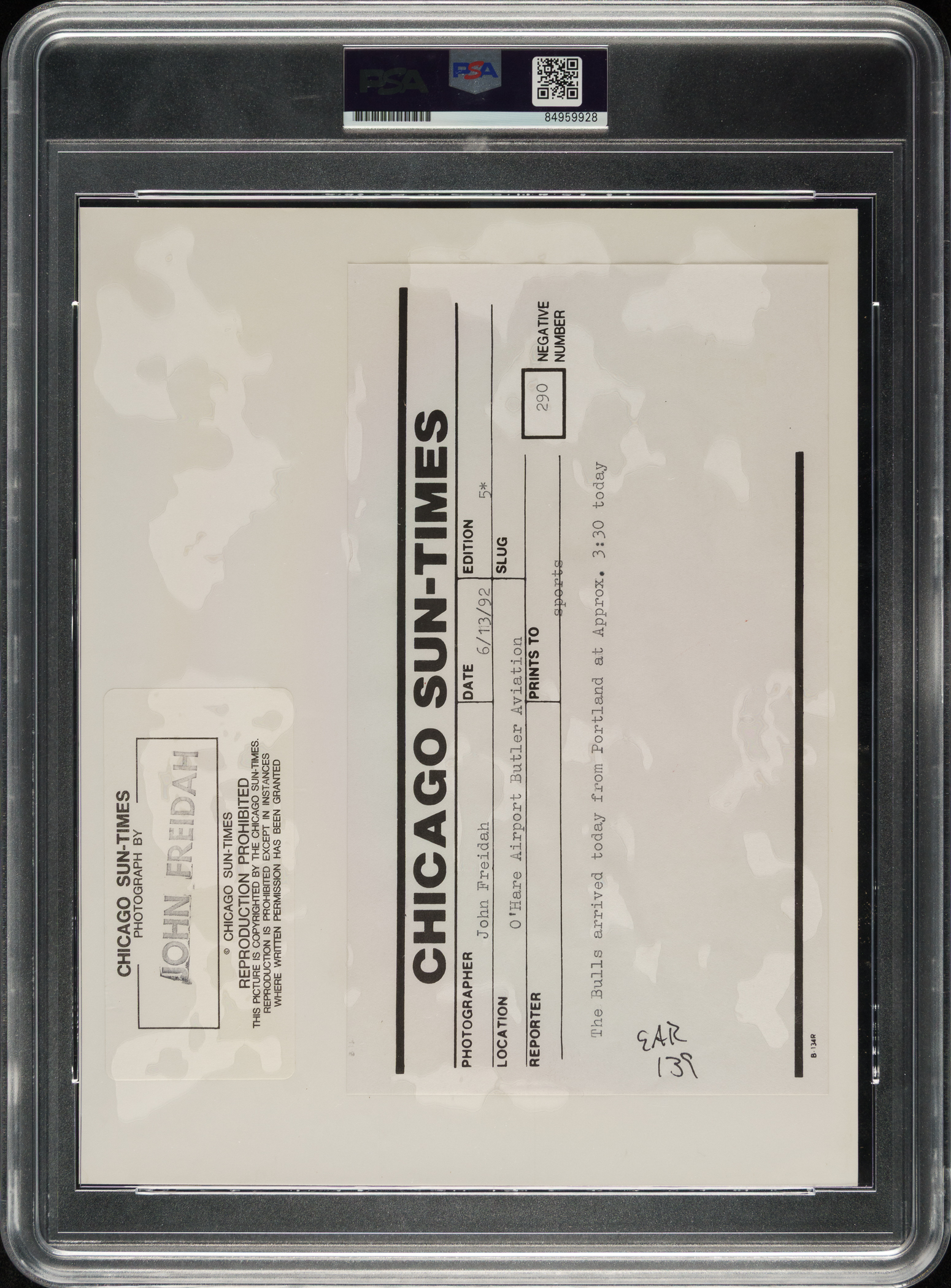 Encapsulated and certified as an original Type I photograph by PSA/DNA. Chicago Bulls Hall of Famer Michael Jordan. Dimensions: 8 x 10 inches.