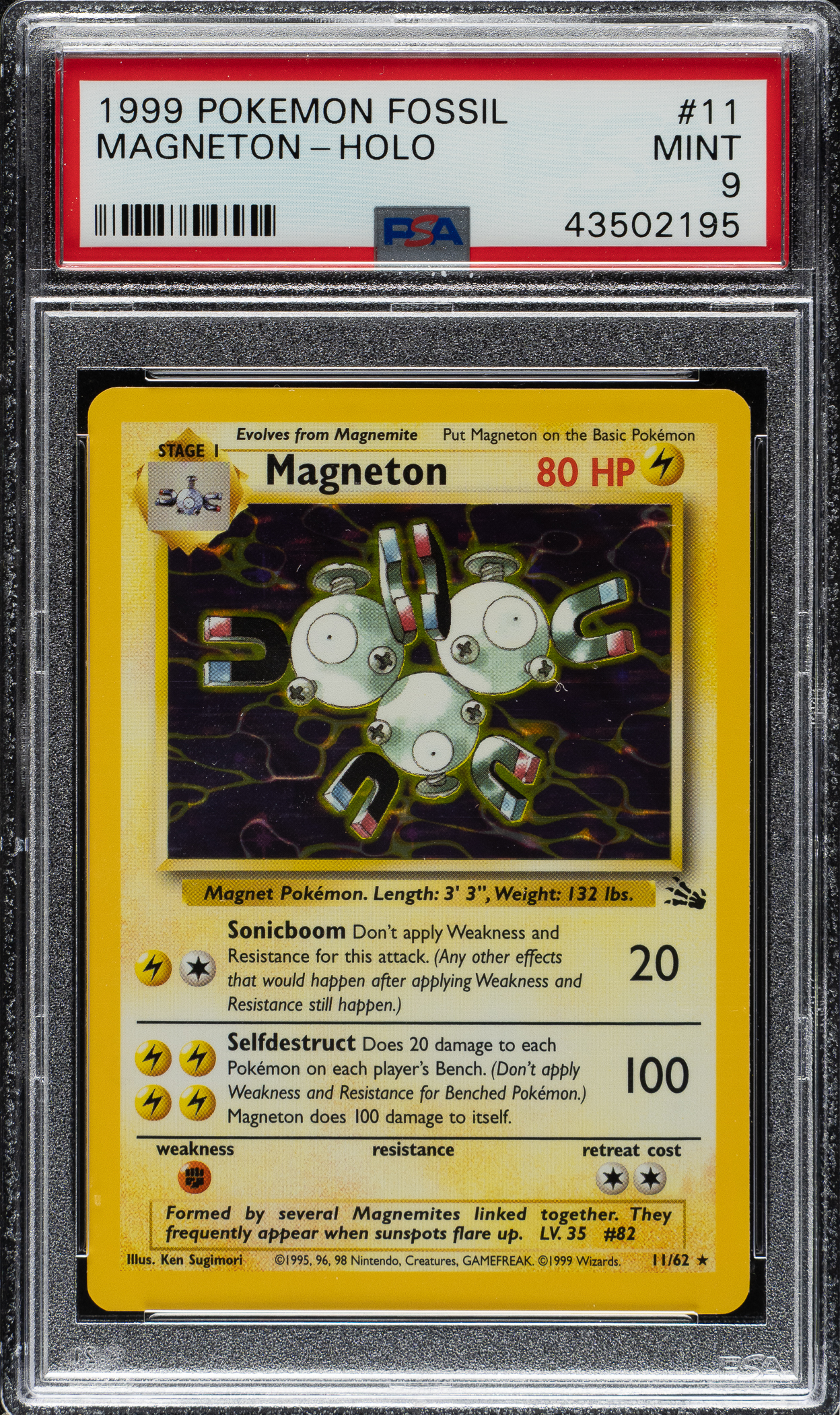 Lot # 2722: 1999 Pokemon Fossil #11 Magneton Holographic PSA MINT 9